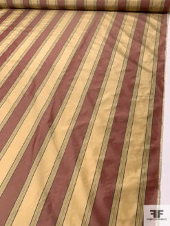 Vertical Striped Yarn-Dyed Lightweight Silk Satin – Bright Copper / Yellow / Dusty Aqua / Champagne