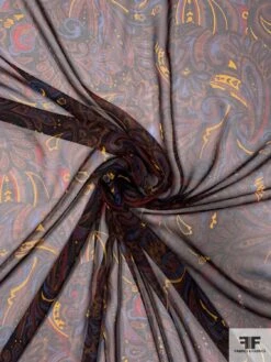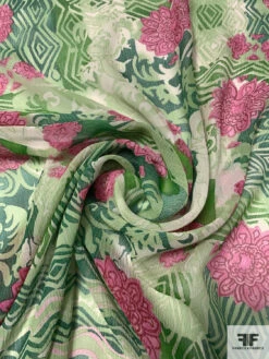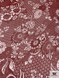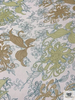 Floral Silhouette And Border Pattern Printed Slightly Crinkled Silk Chiffon – Brown / Off-White