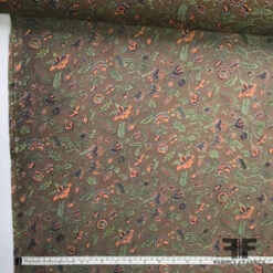 Anna Sui Ditsy Floral Printed Satin Striped Silk Chiffon – Brown / Turquoise / Lime / Off-White
