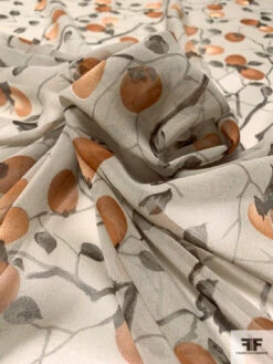This antique-look damask printed linen-weave cotton in earthy tans, rust, and coral is a durable and high-quality cotton. The linen-weave cotton gives the fabric a natural feel and stiffer drape, while the antique damask print adds a vintage charm.