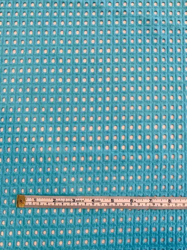 You’ll feel refreshed and spiritually grounded with this turquoise boxy embroidered cotton eyelet designer fashion fabric.