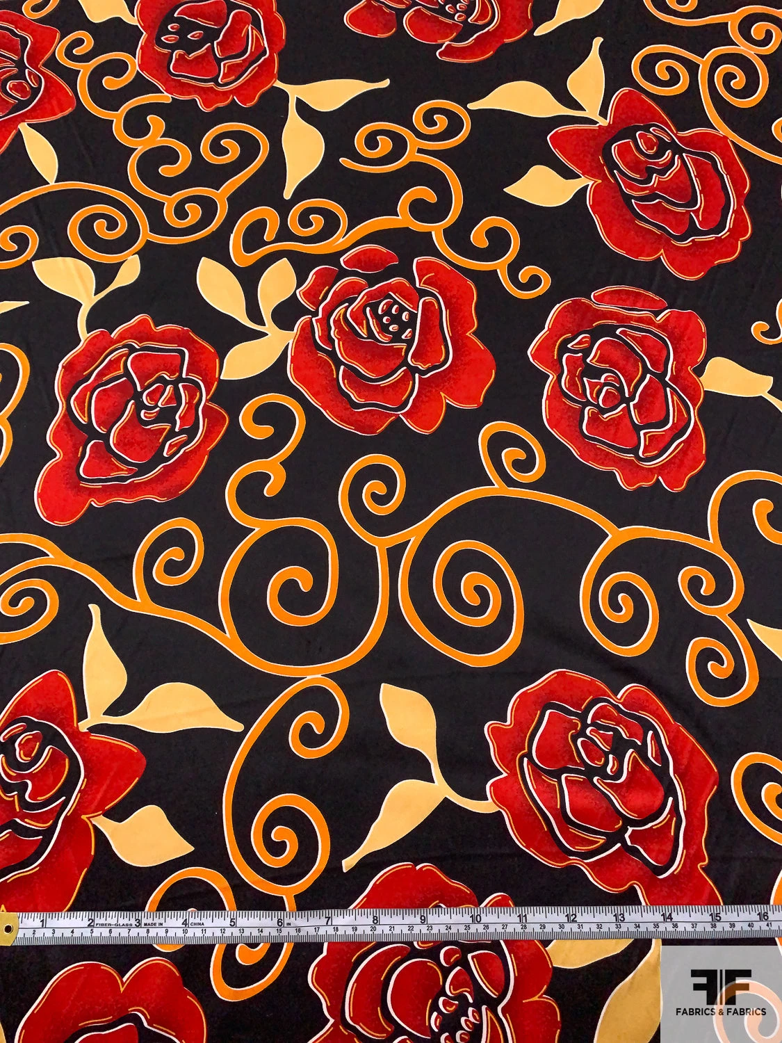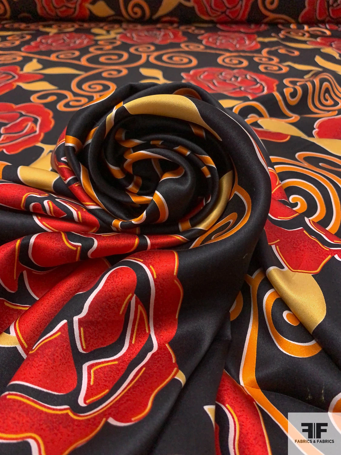 Be the first to review “Floral And Swirl Vine Printed Silk Charmeuse – Orange / Red / Black” Cancel reply