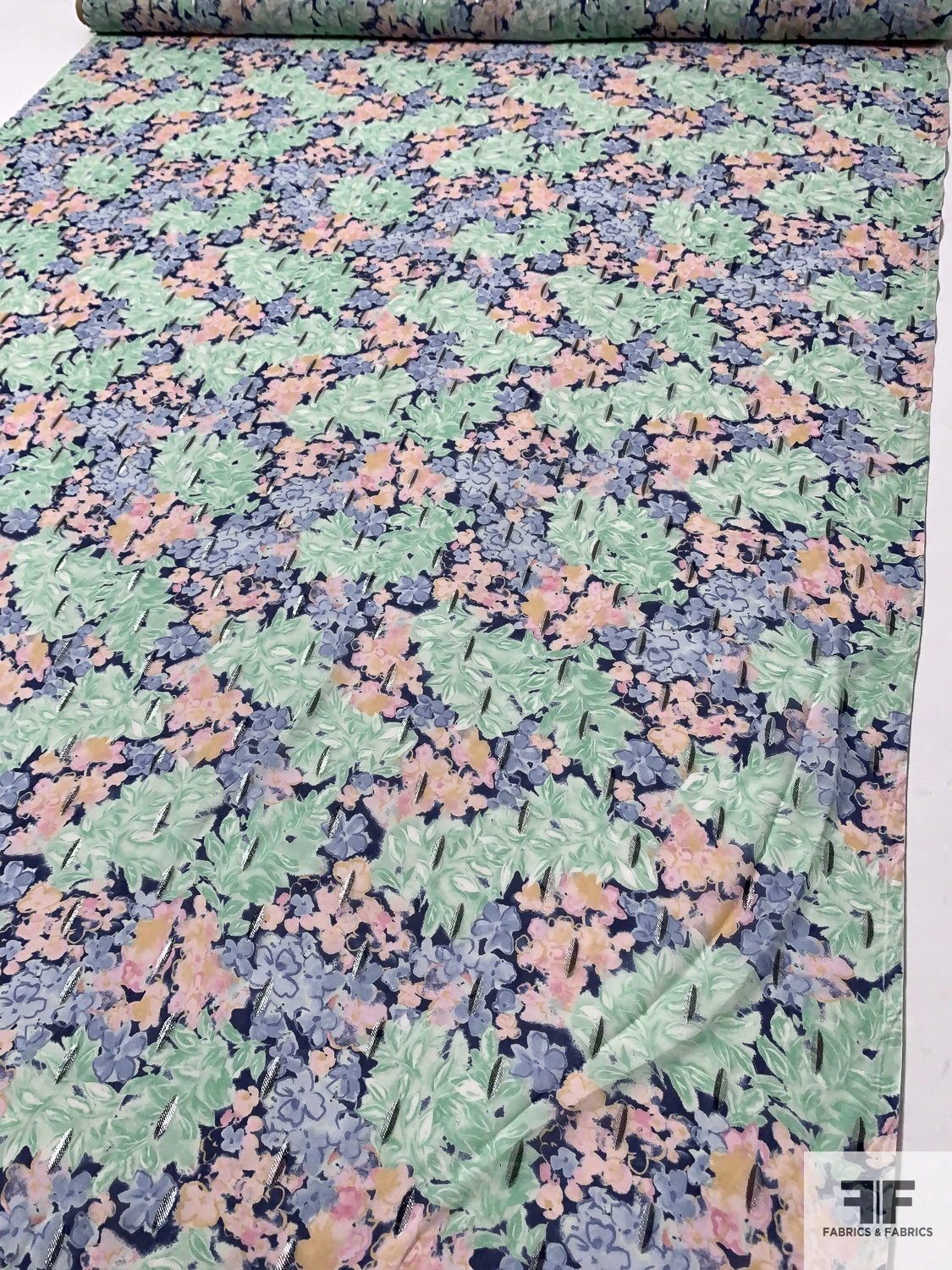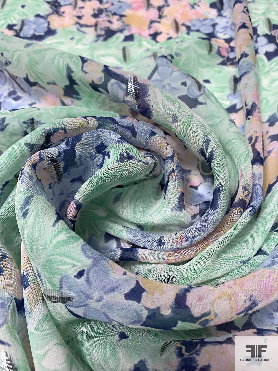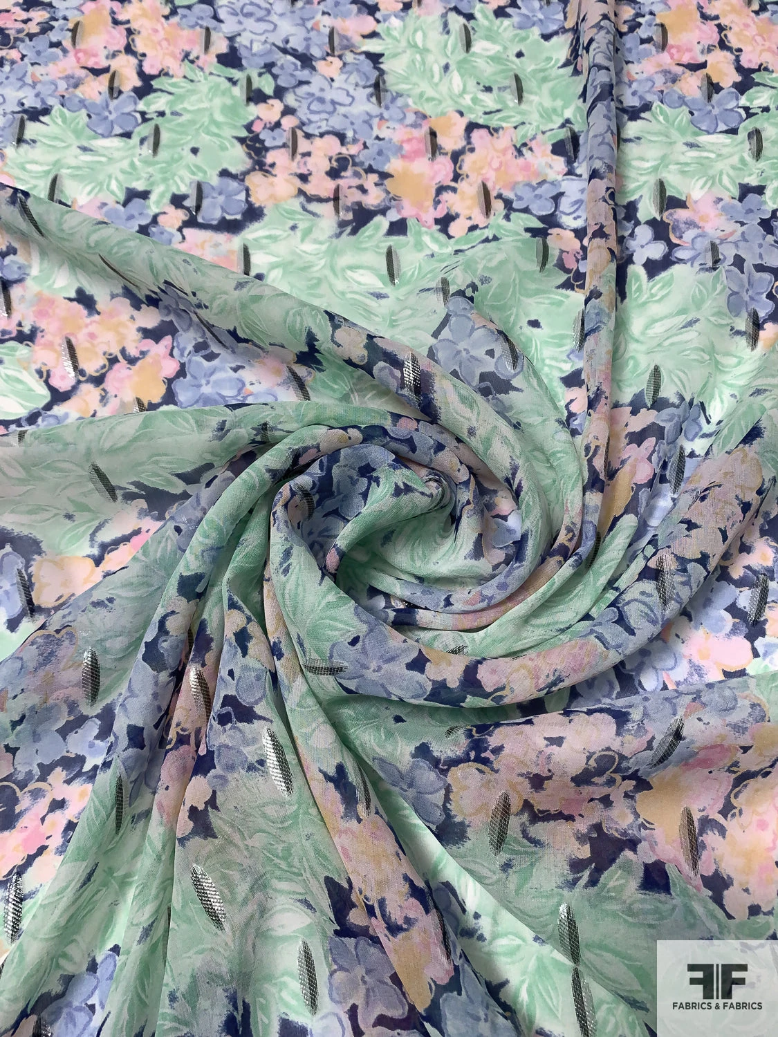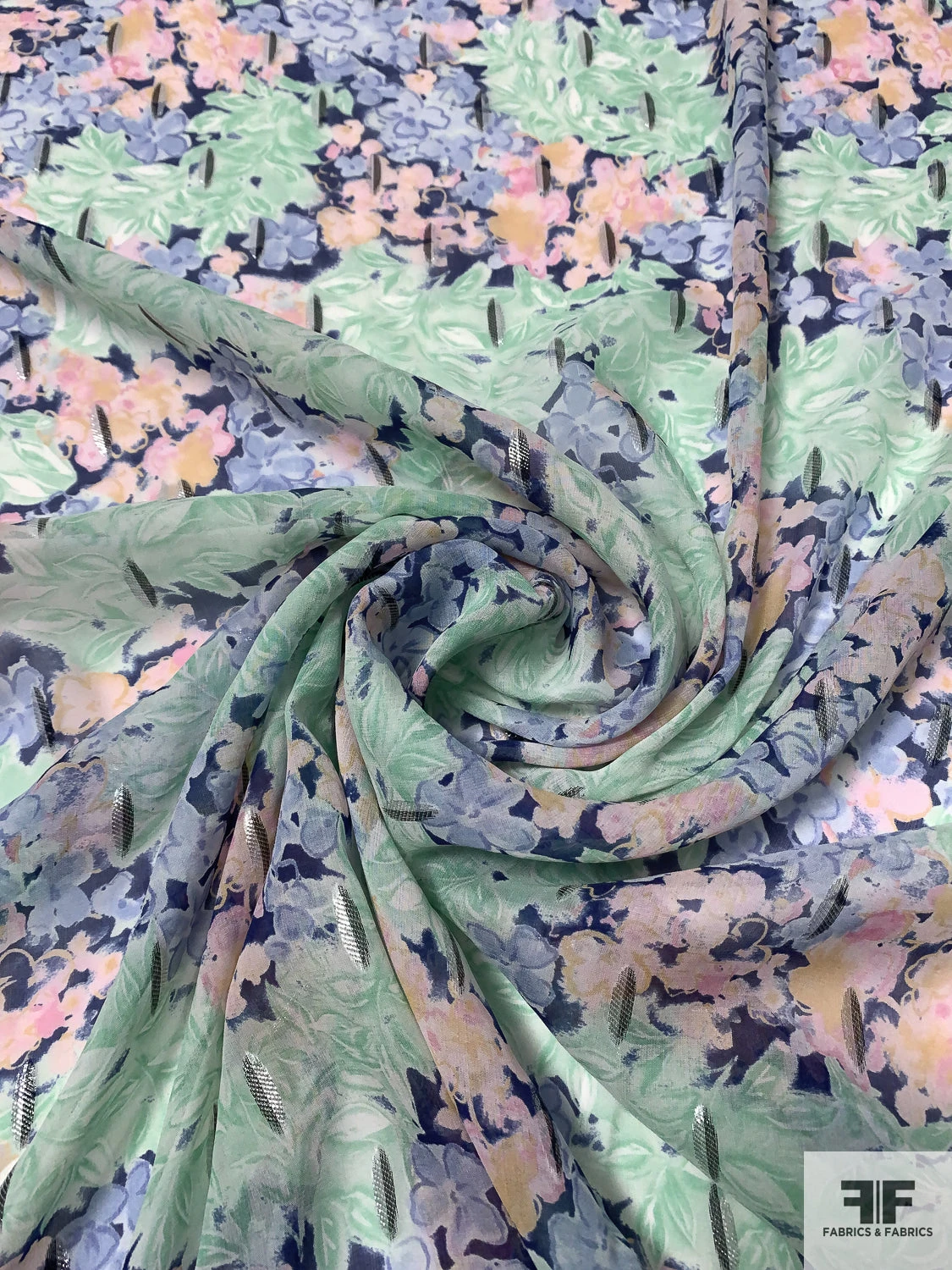 Be the first to review “Floral Printed Silk Chiffon With Metallic Detailing – Minty Green / Navy / Light Peach” Cancel reply