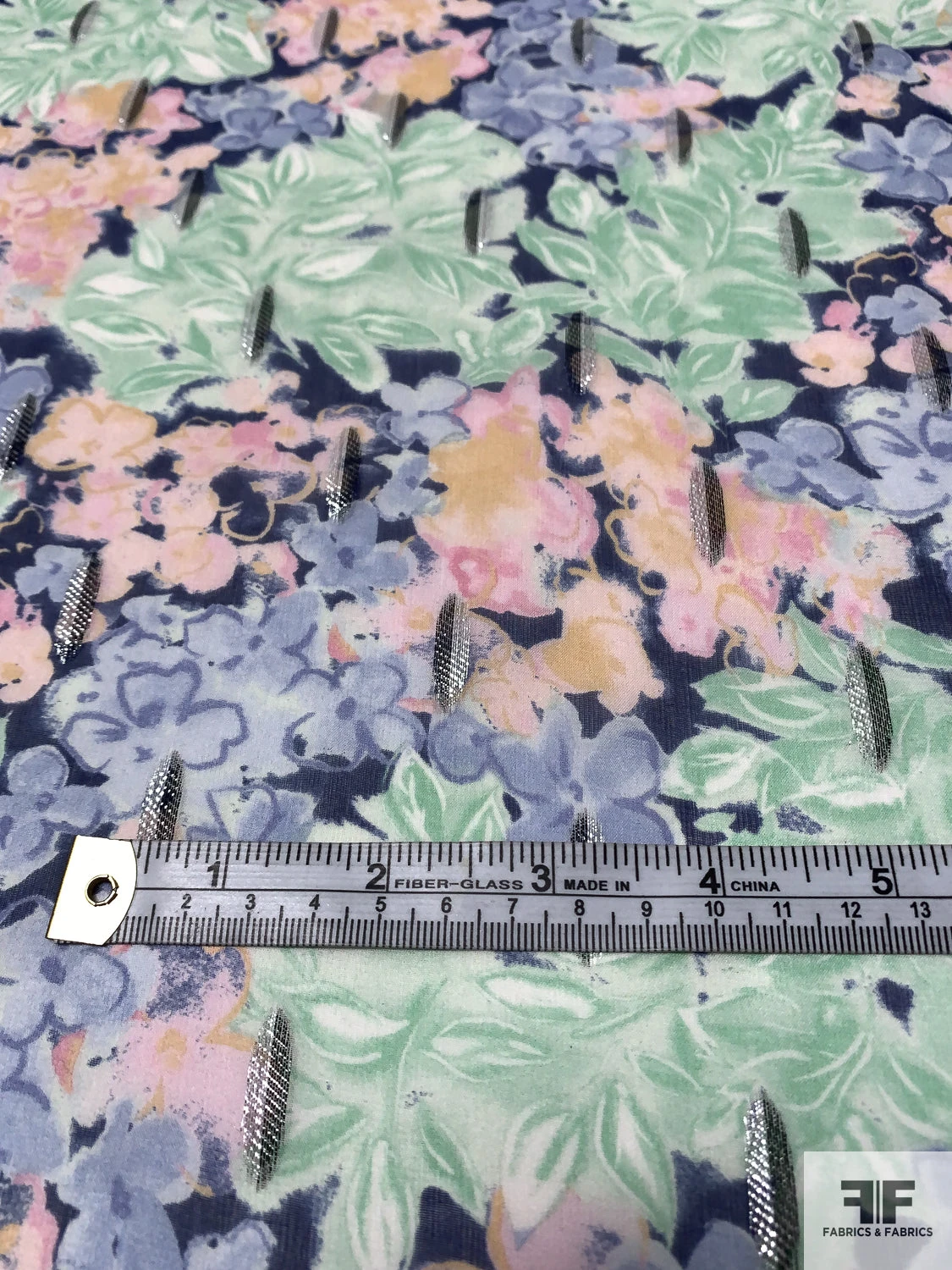 Ditsy Watercolor Floral Matte-Side Printed Silk Charmeuse – Navy / Blue / Green / Yellow / Orange