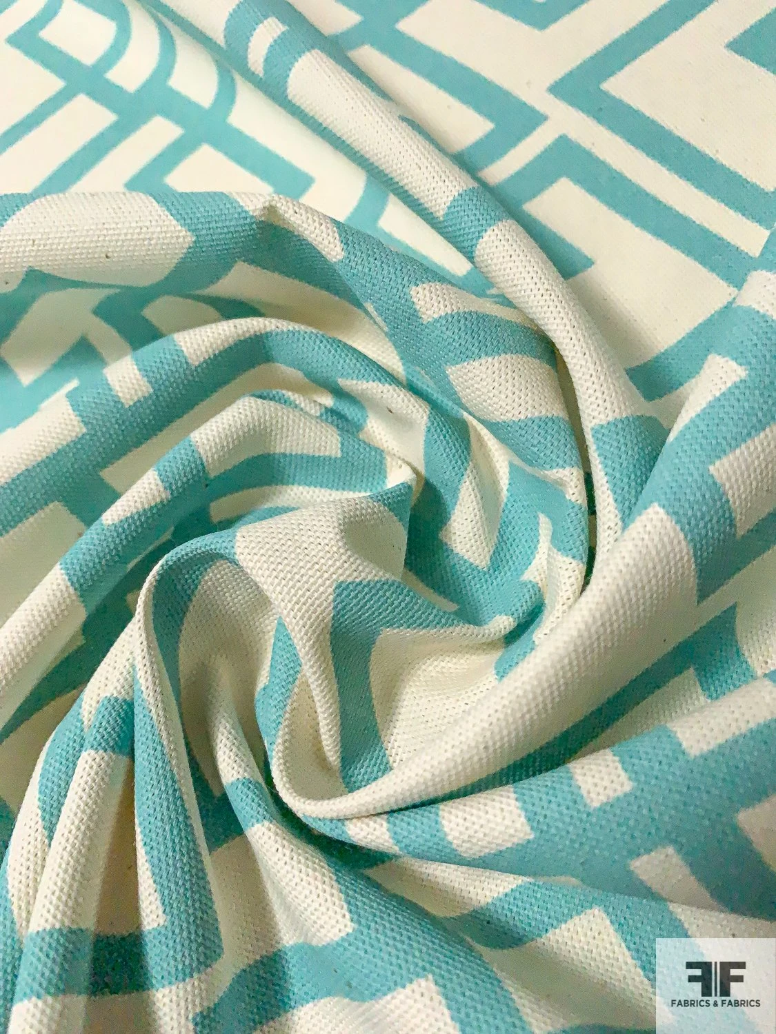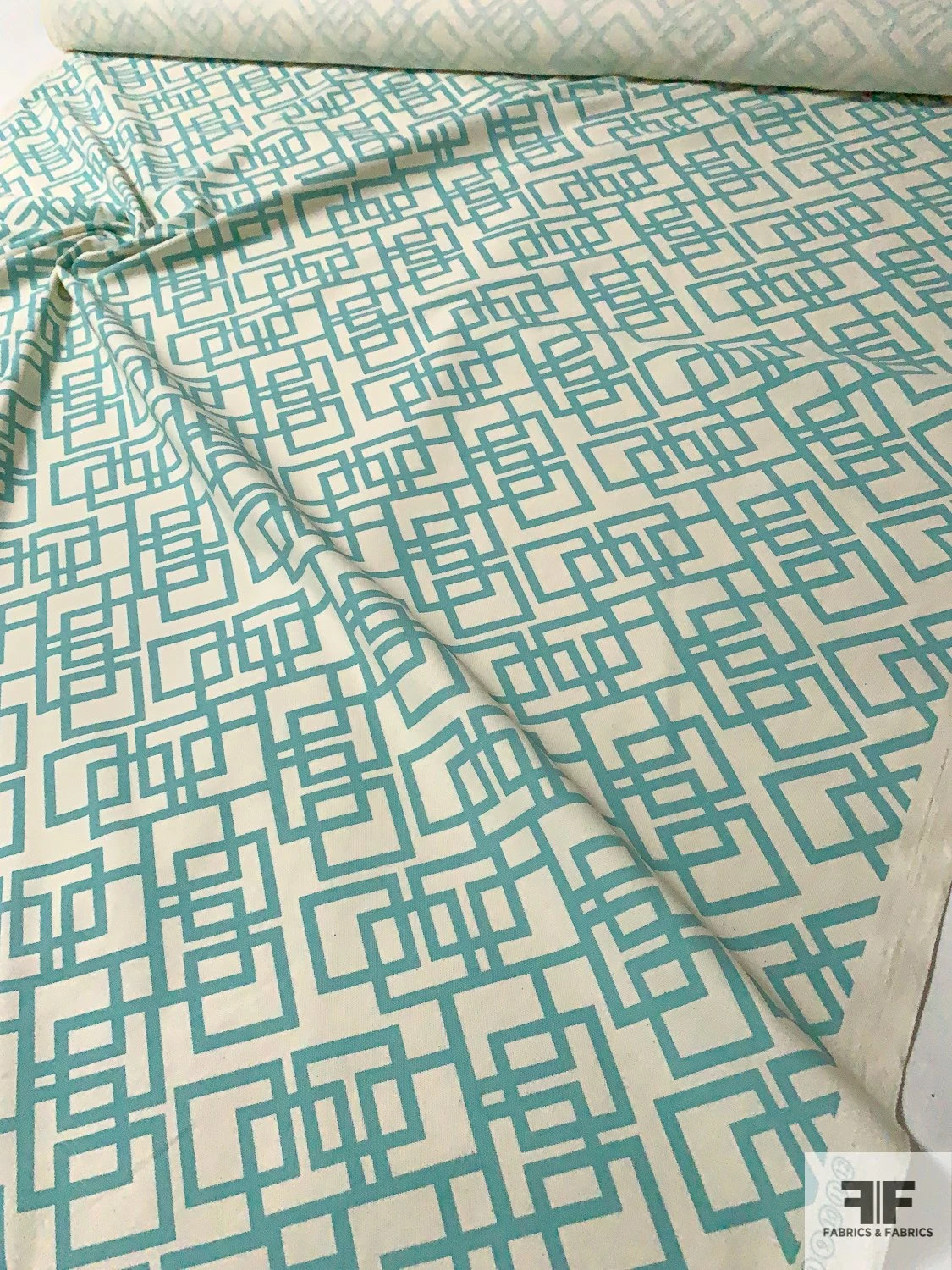 Be the first to review “Geometric Lattice Printed Medium-Weight Cotton Canvas – Seafoam / Cream” Cancel reply