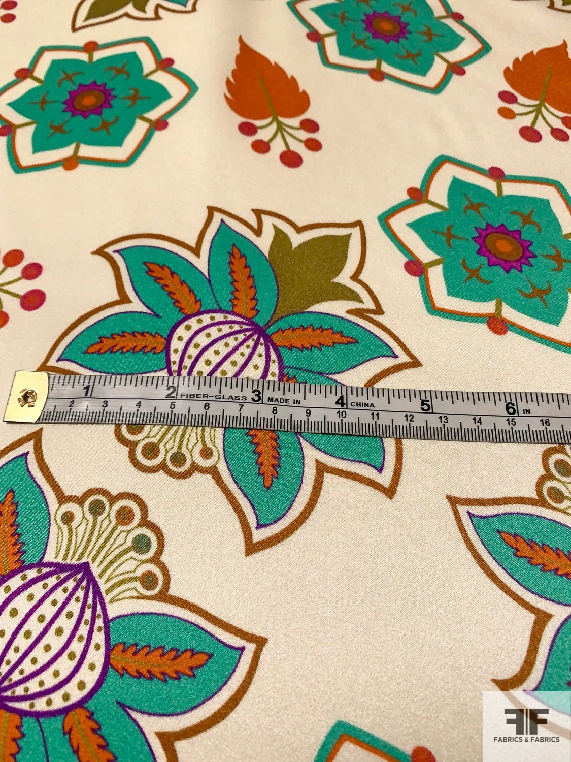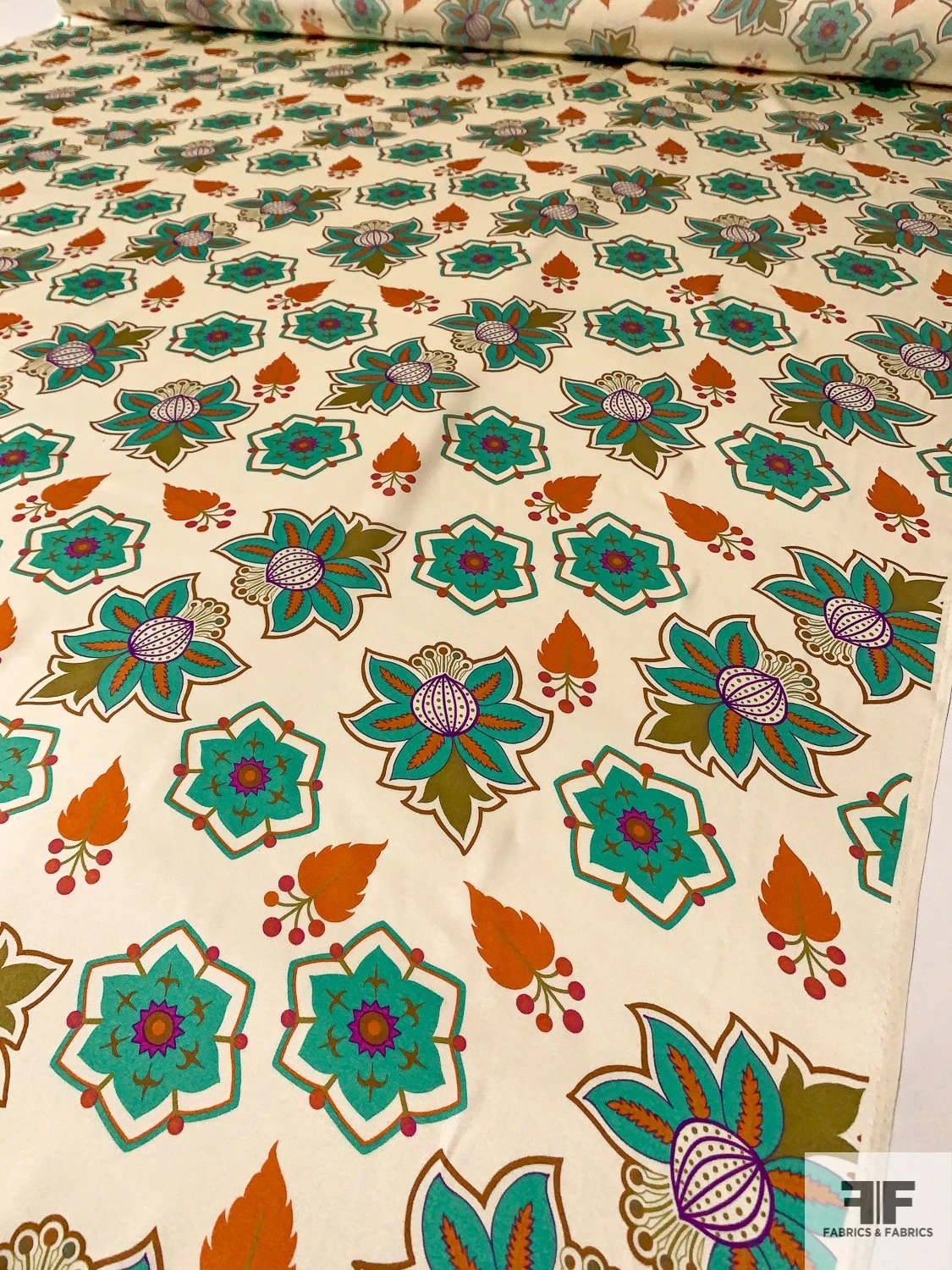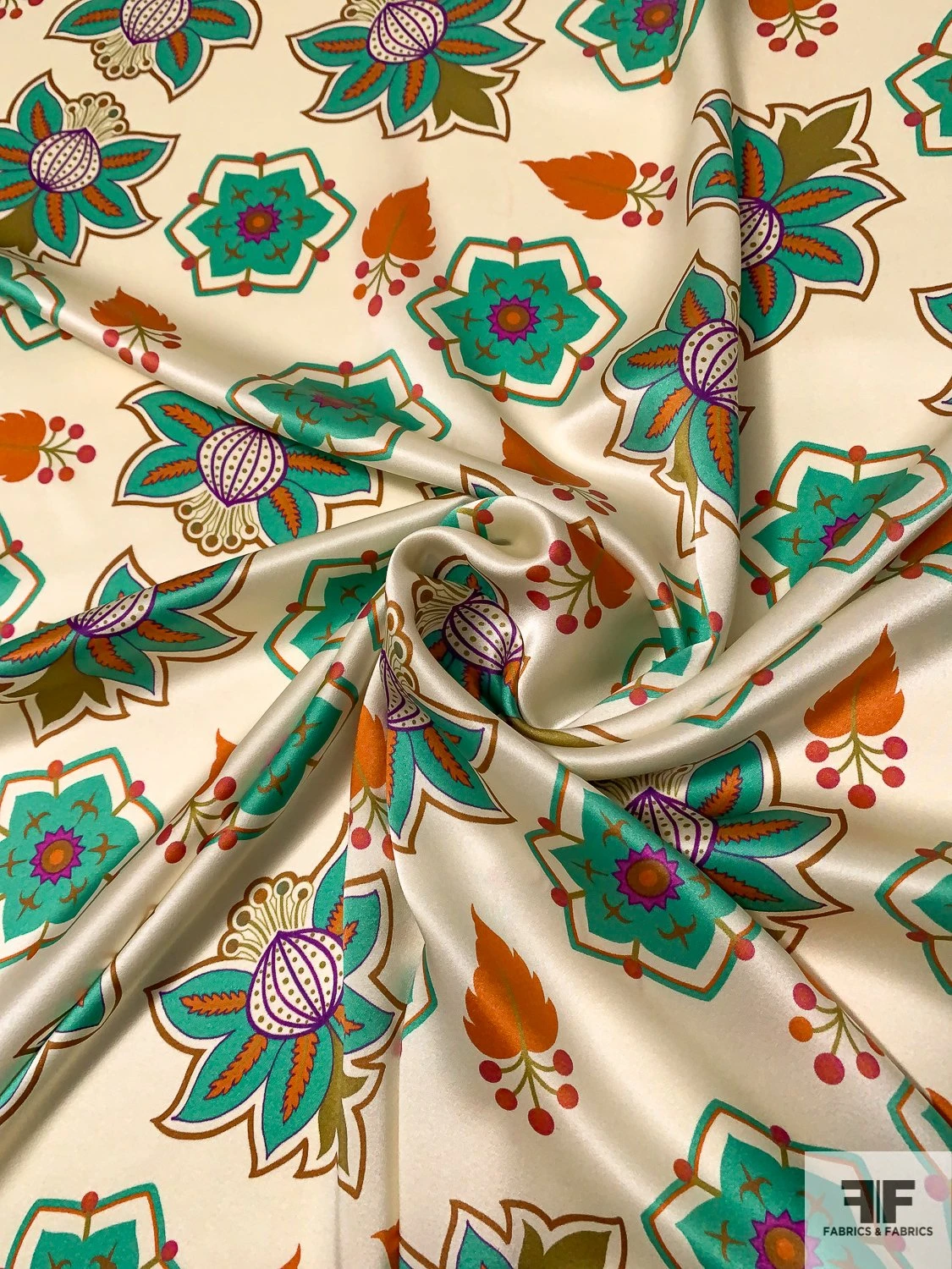 Be the first to review “Graphic Leaf Floral Printed Silk Charmeuse – Turquoise / Ivory / Orange / Purple” Cancel reply