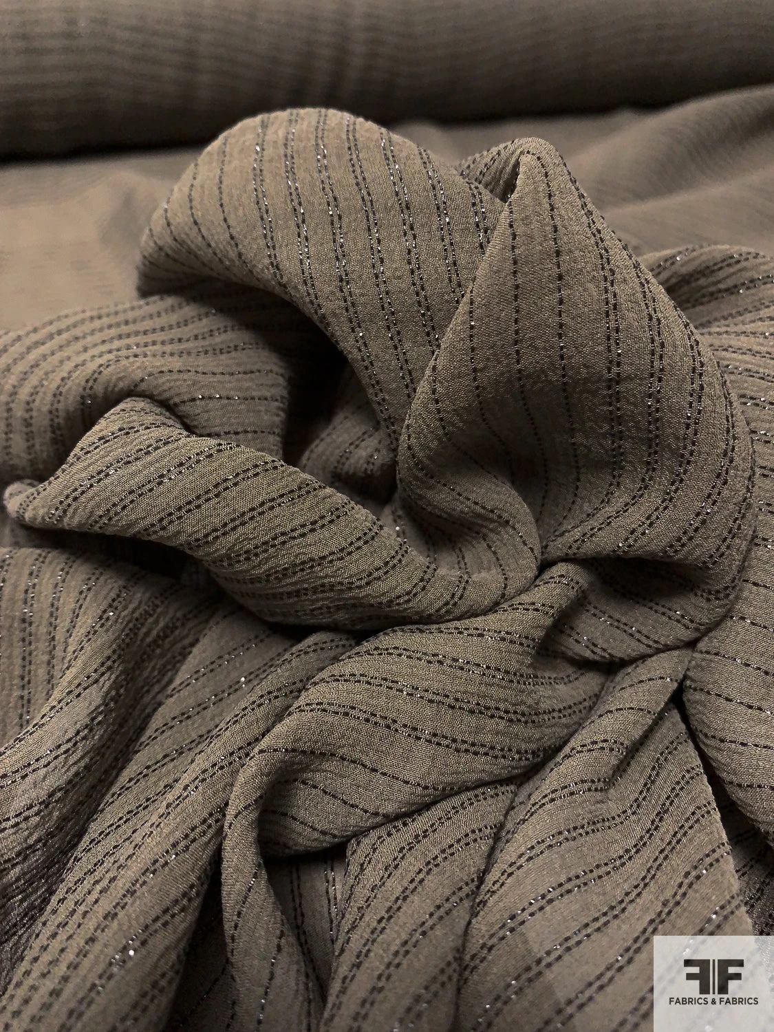 Be the first to review “Heavy Silk Chiffon With Horizontal Lurex Pinstripes – Smoky Olive / Black” Cancel reply