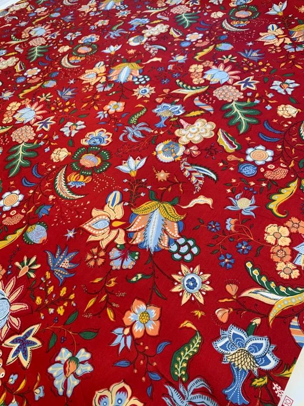 This multicolor holiday floral printed cotton sateen designer fashion fabric in red is fabulous, fun and festive!