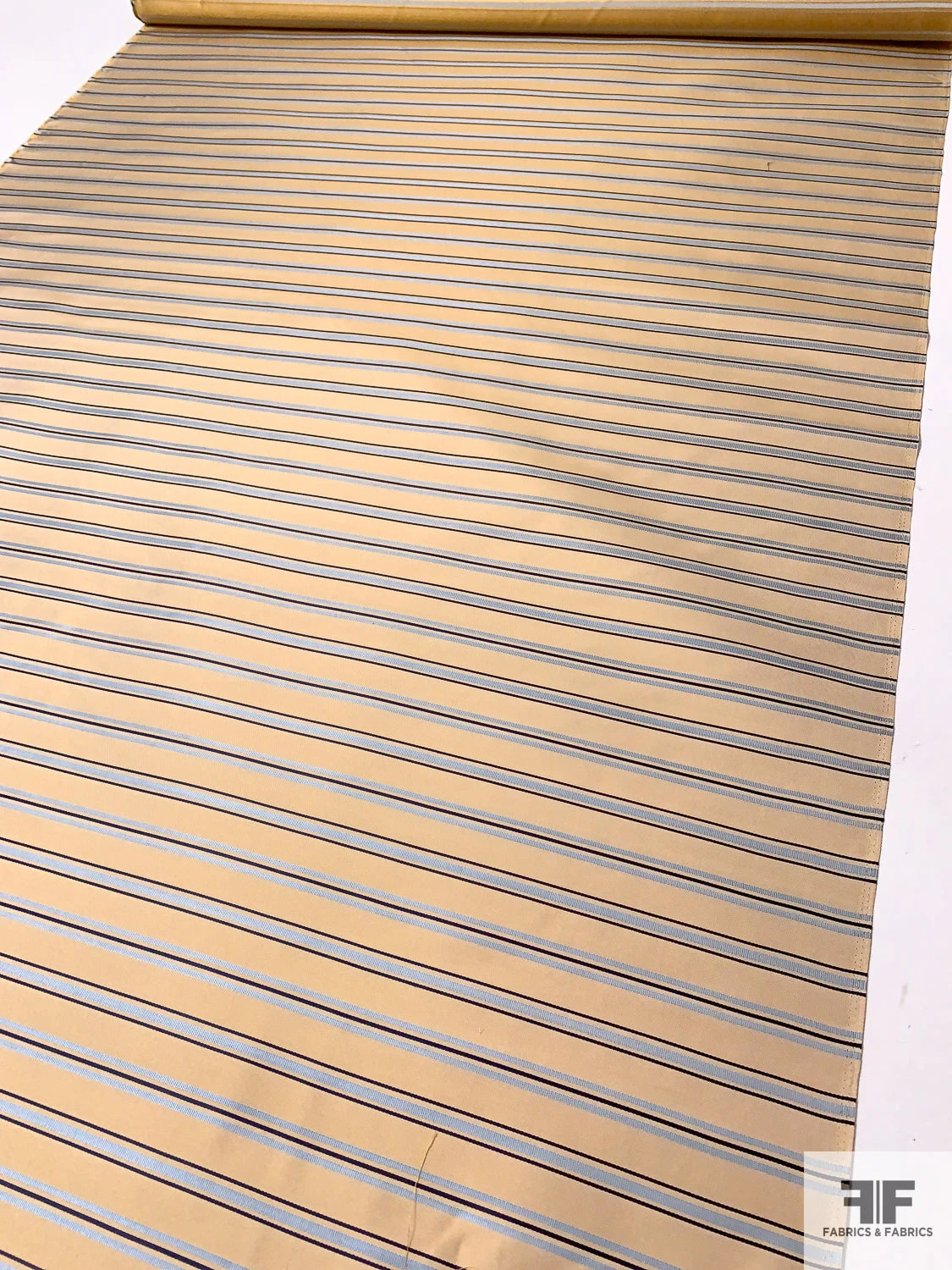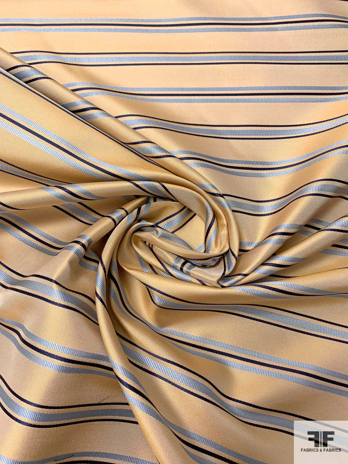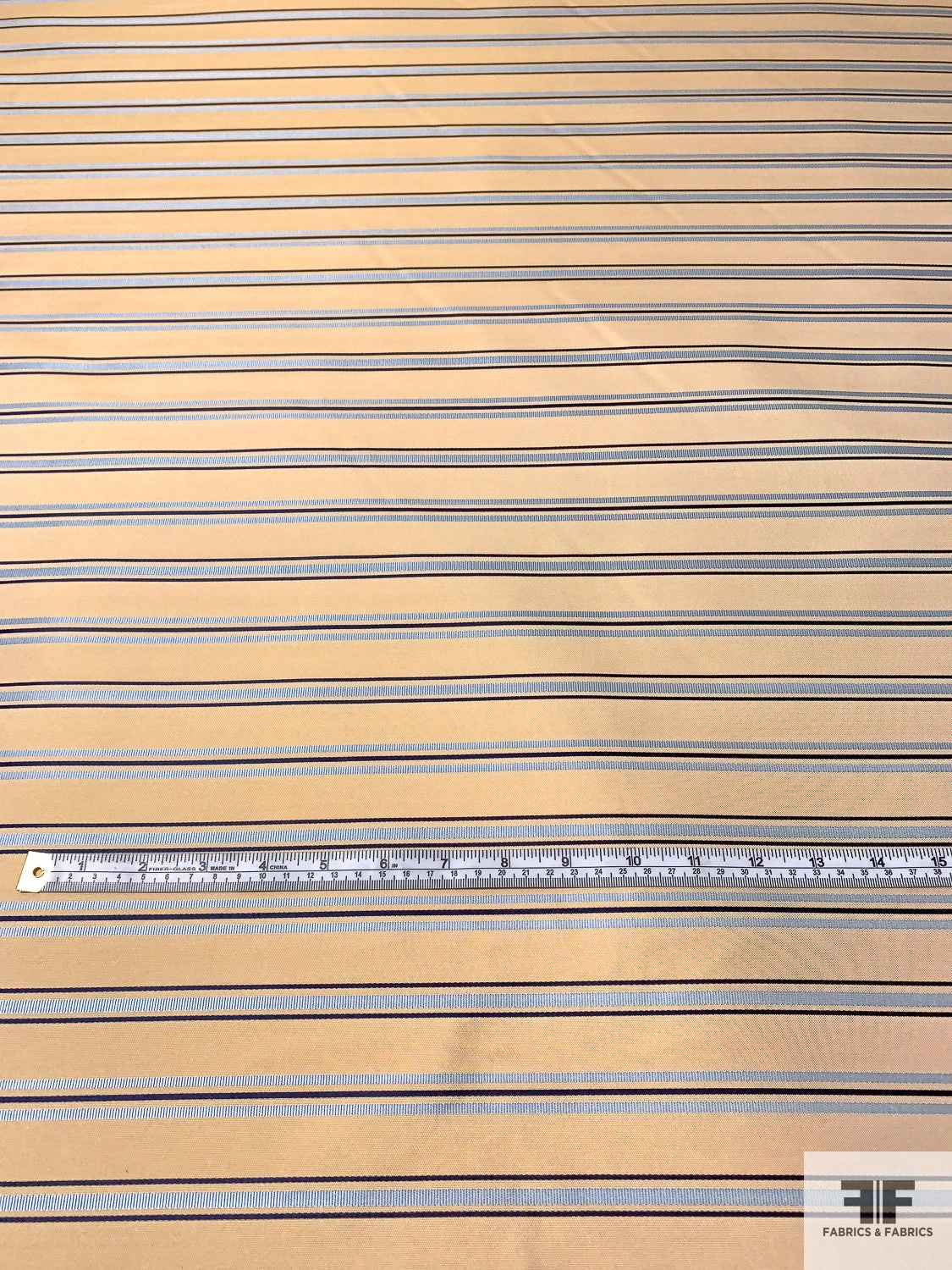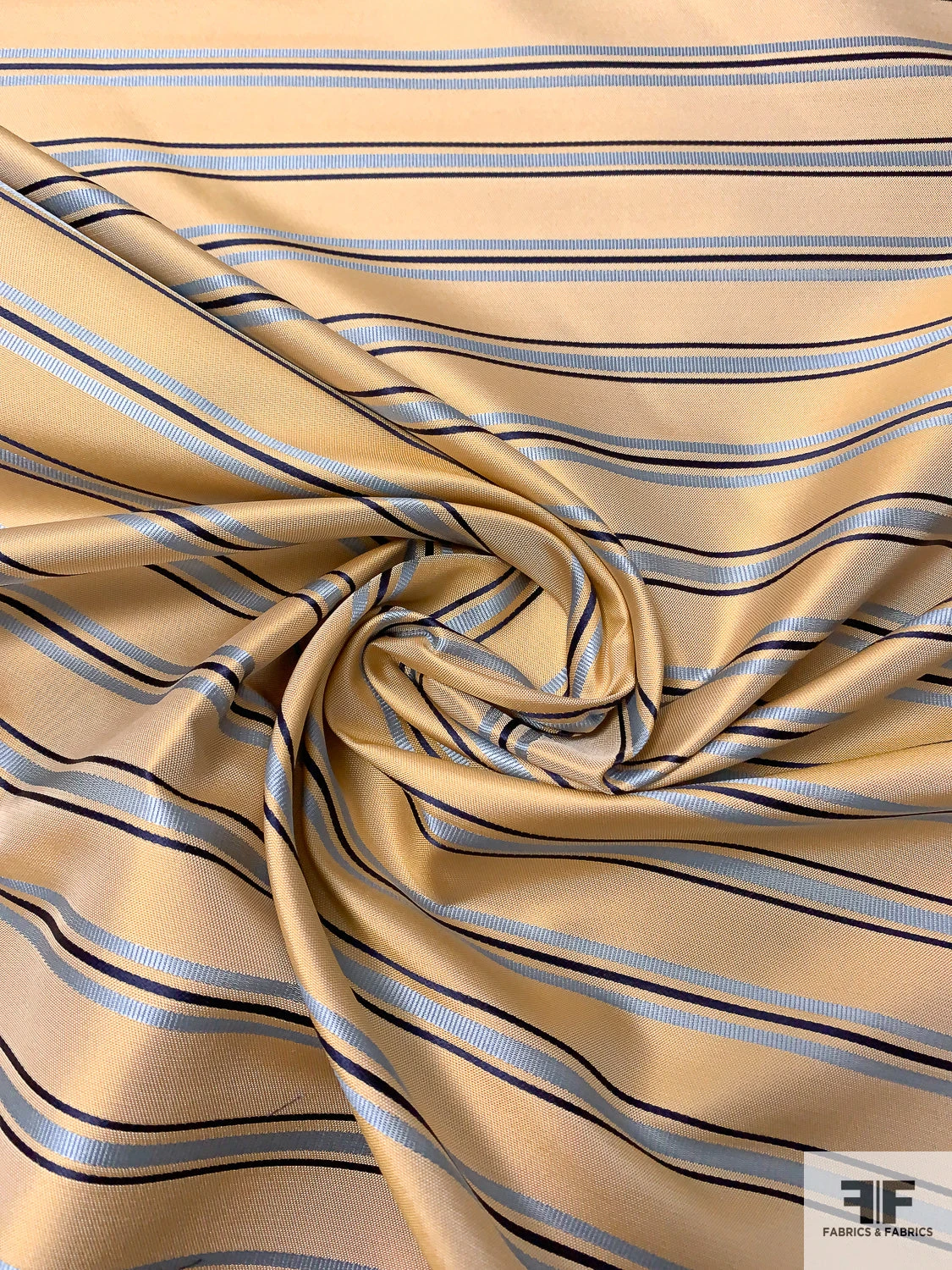 Be the first to review “Horizontal Striped Silk Necktie Jacquard Brocade – Biscotti Gold / Sky Blue / Navy” Cancel reply