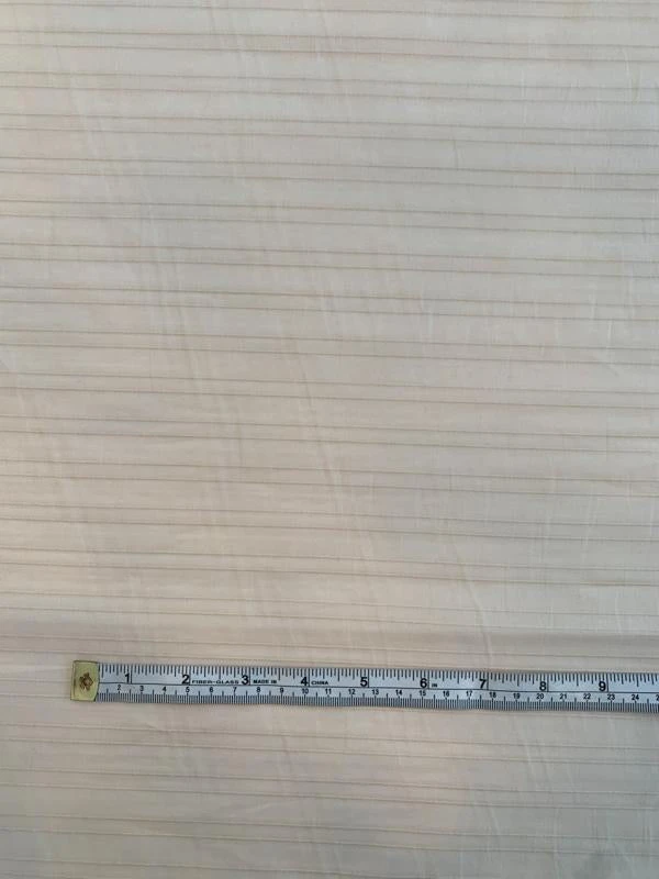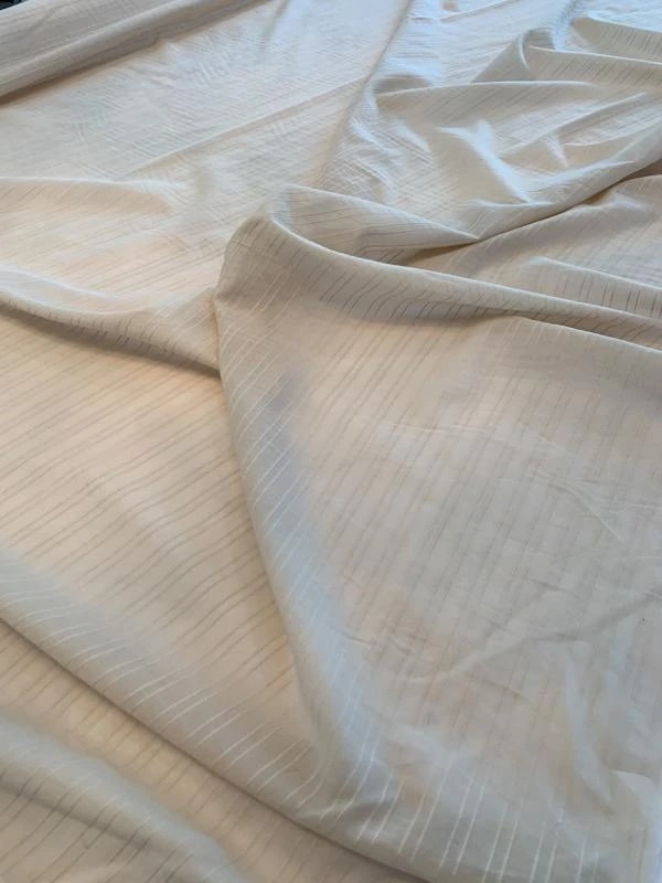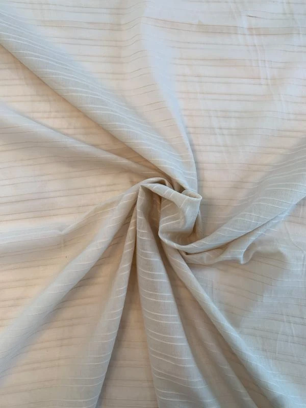 This tan horizontal textured striped cotton voile designer fashion fabric has a delightfully lightweight and gauzy texture.