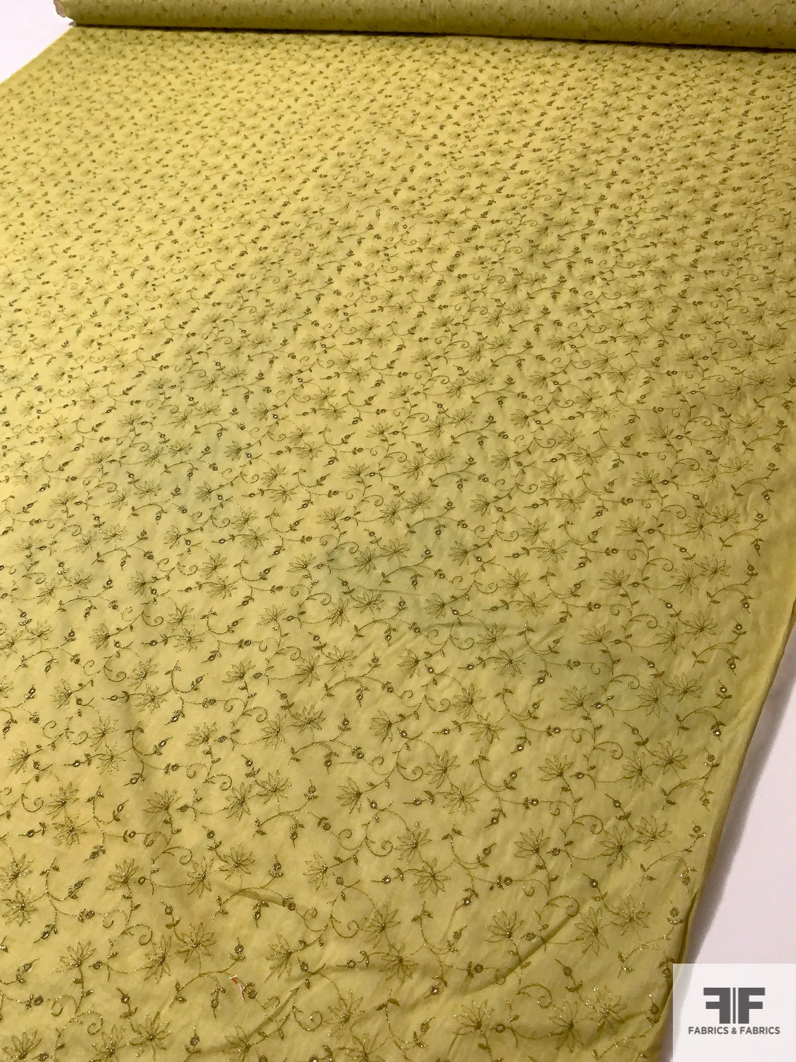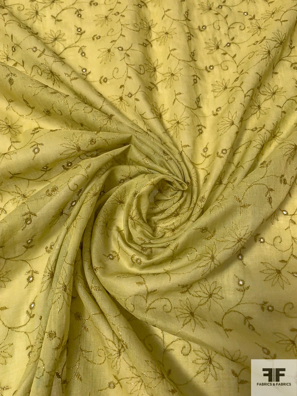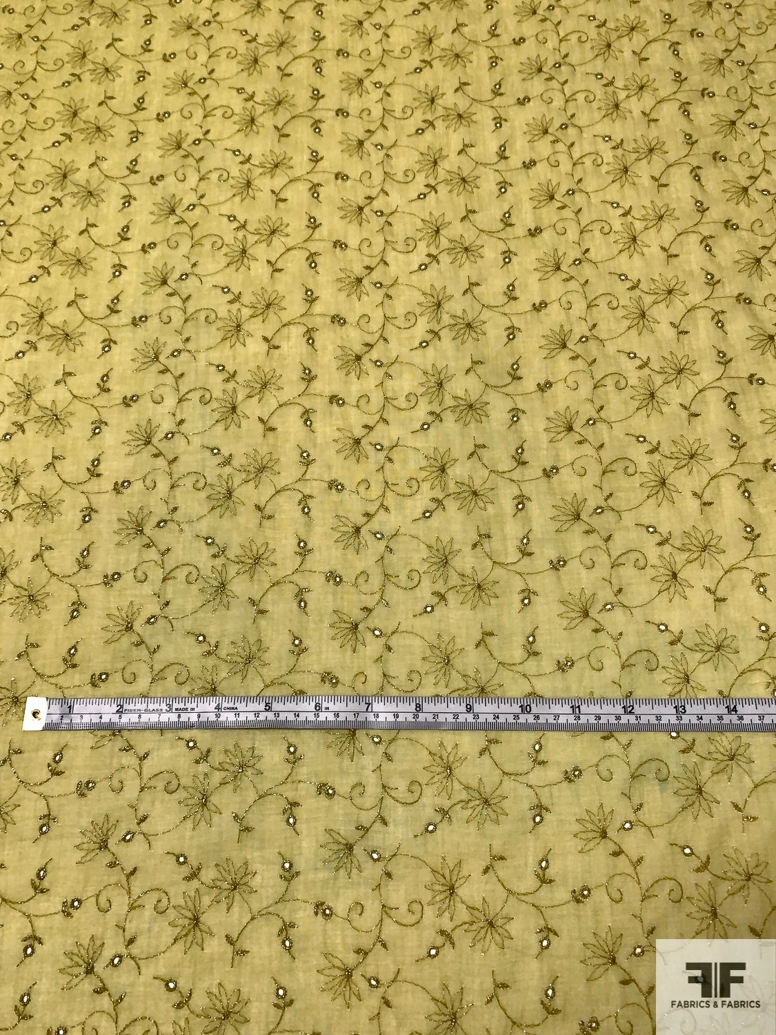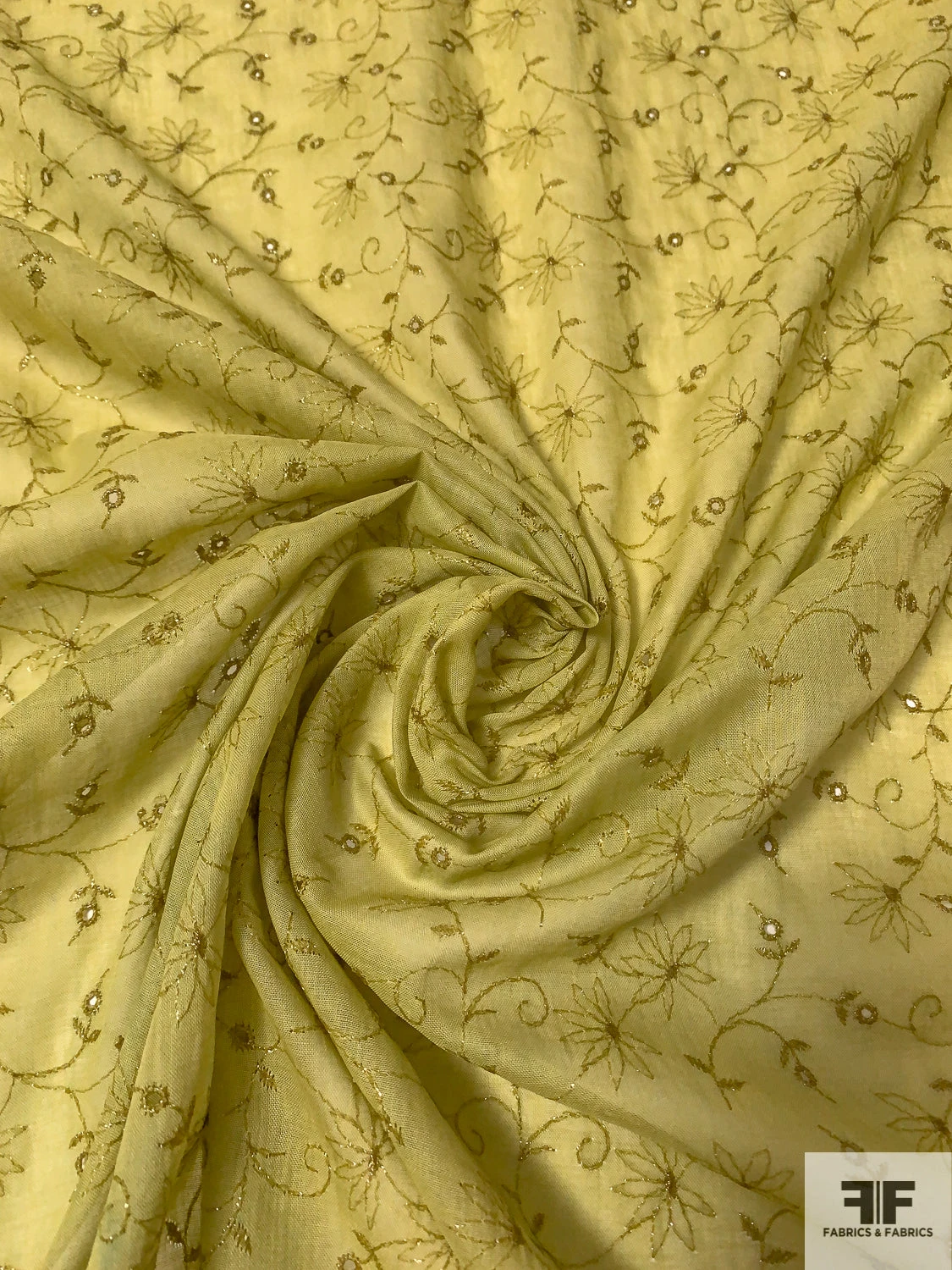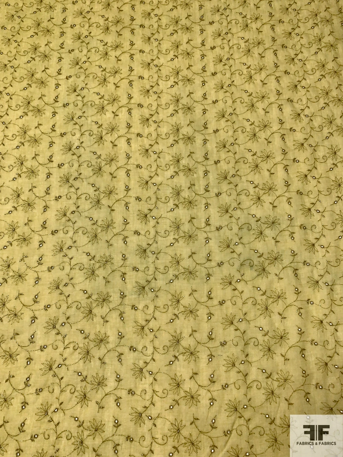 Be the first to review “Intricate Floral Embroidered Lurex Threadwork On Cotton Eyelet Voile – Light Olive Green” Cancel reply