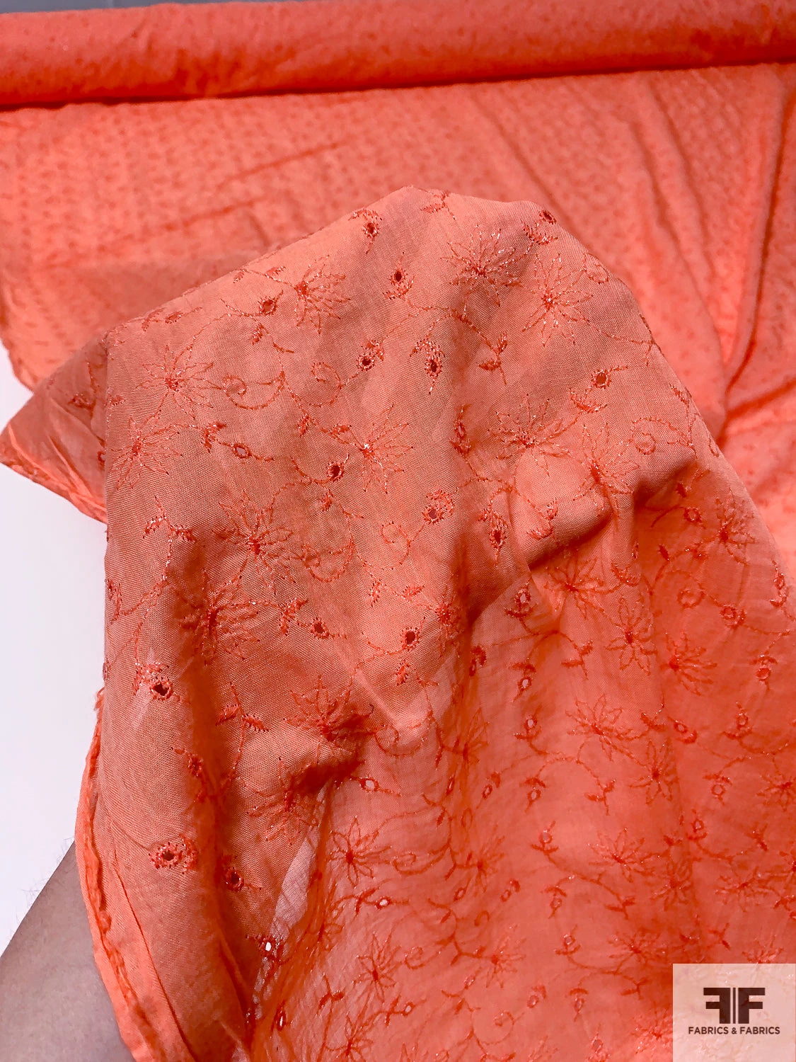 Be the first to review “Intricate Floral Embroidered Lurex Threadwork On Cotton Eyelet Voile – Peachy Orange” Cancel reply