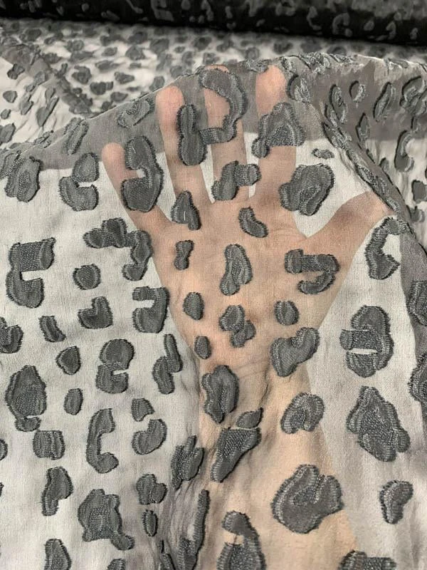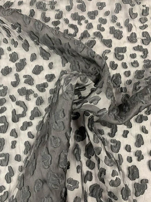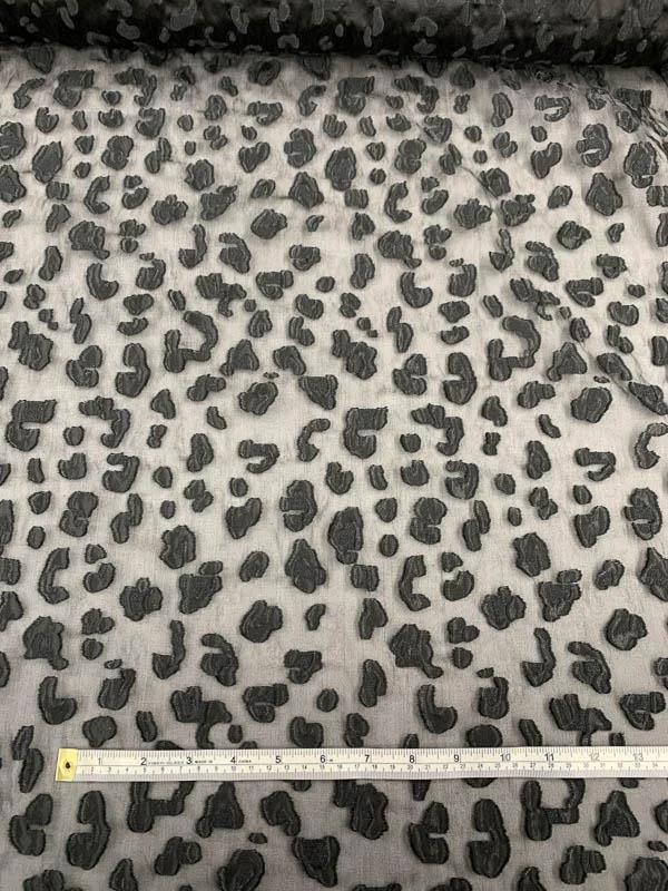 There is a hint of mystery and noir in this black irregular shapes fil coupé novelty organza European designer fashion fabric.