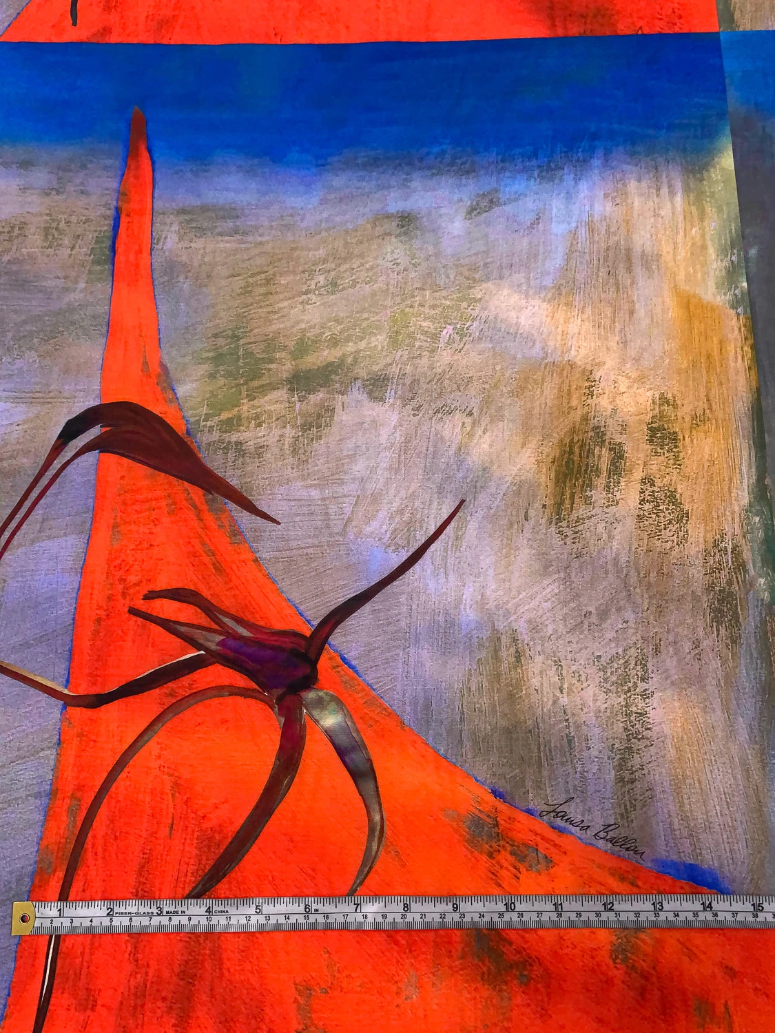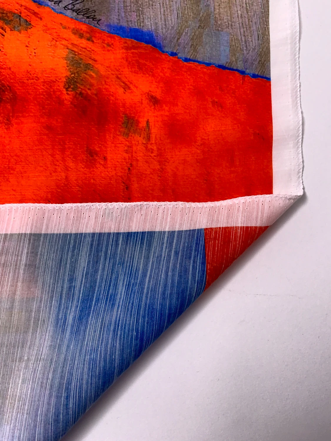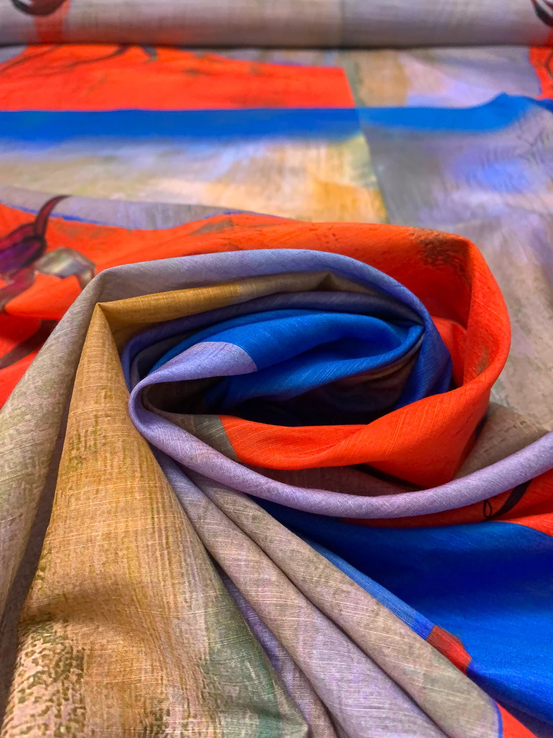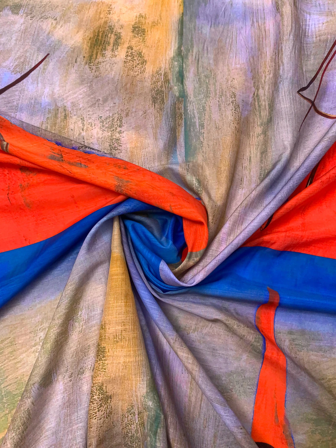 Be the first to review “Italian Abstract Frames Printed Silk-Cotton Lawn Voile With Light Shantung Weave Panel – Hot Orange / Blue / Lavender” Cancel reply