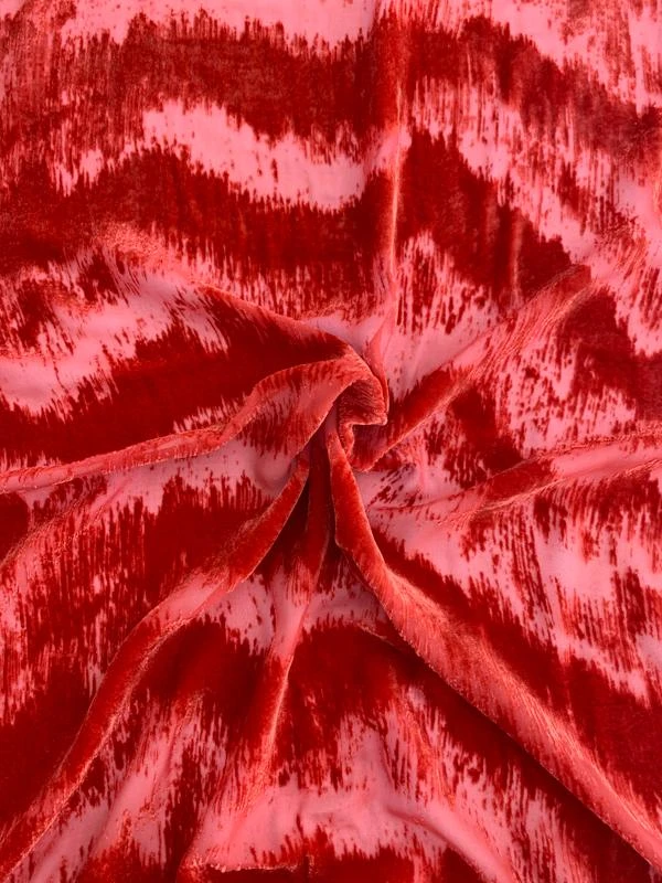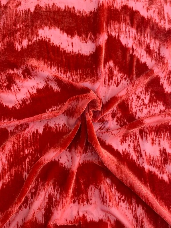 This Italian abstract wavy cut velvet European designer fashion fabric in paprika red has an amazing texture and deep, riveting hue.