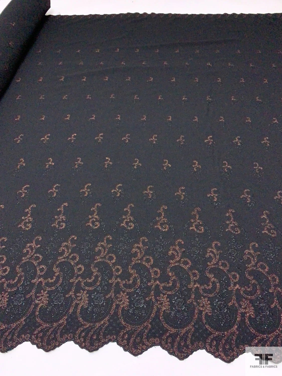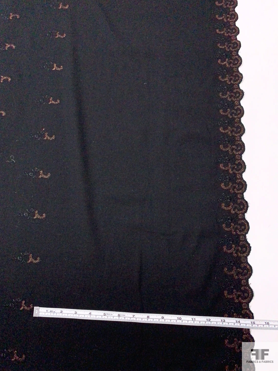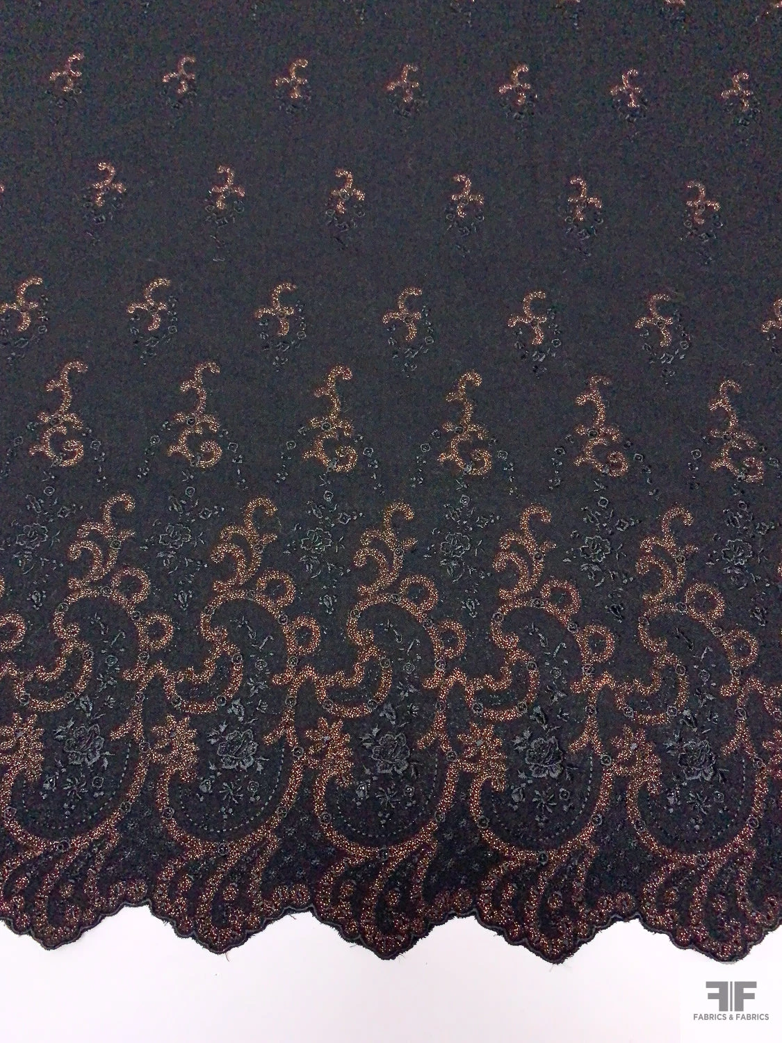 Be the first to review “Italian Double-Scalloped Embroidered Wool Crepe With Metallic Detailing – Black / Copper” Cancel reply