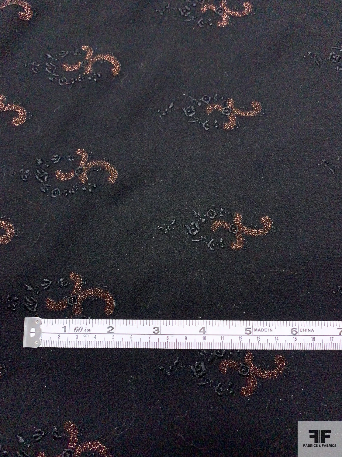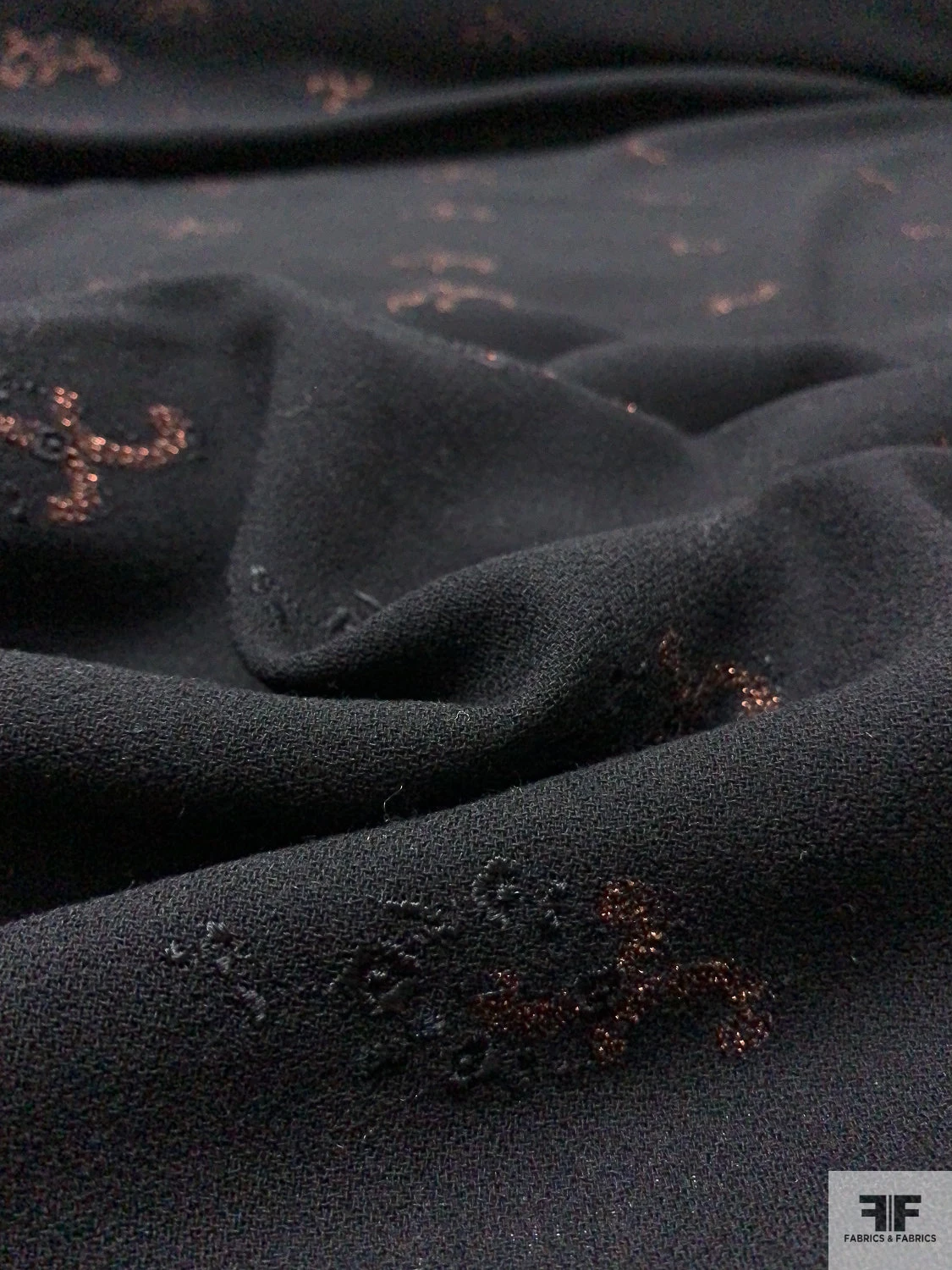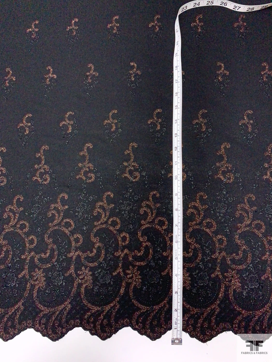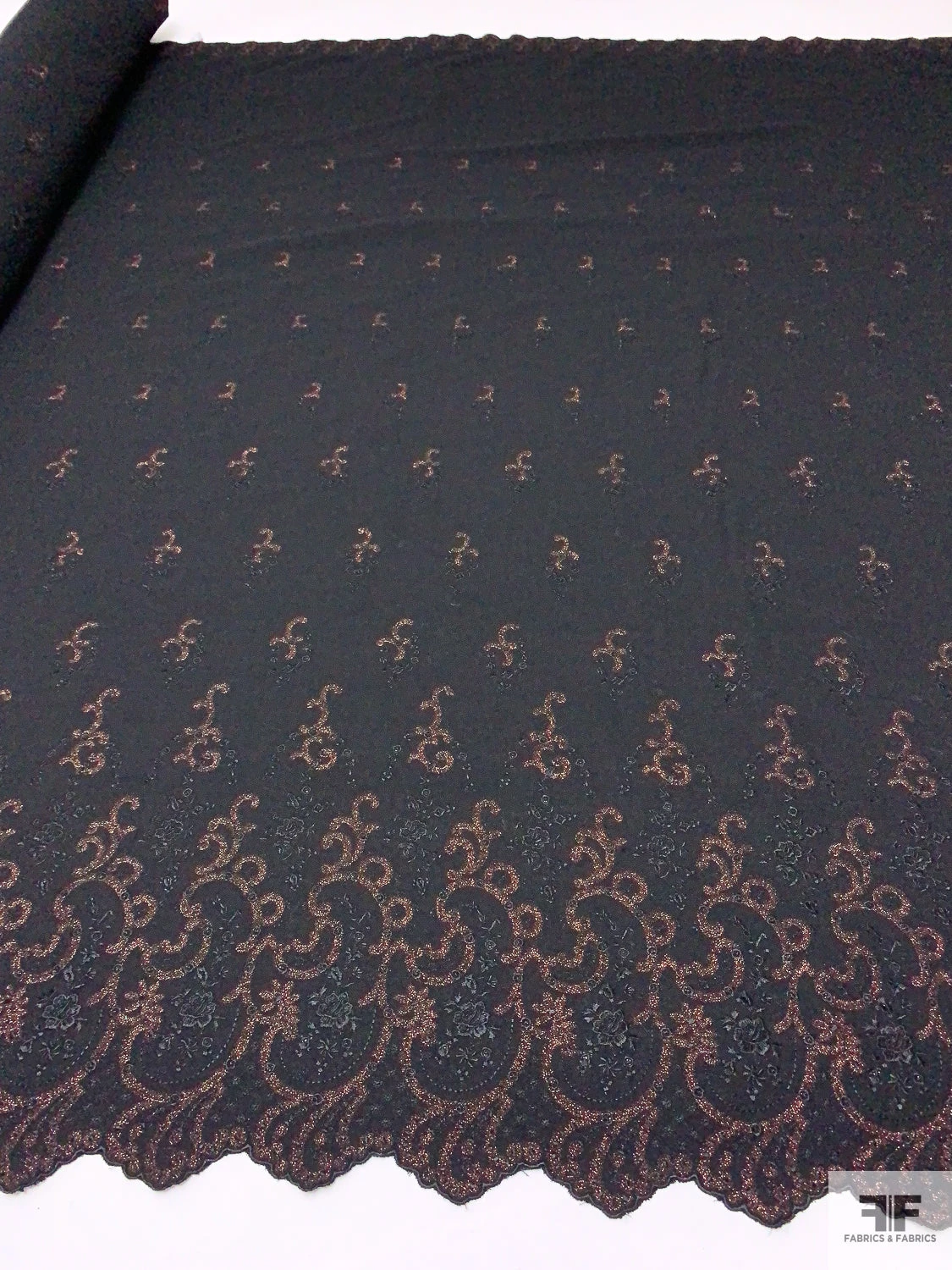 Be the first to review “Italian Double-Scalloped Embroidered Wool Crepe With Metallic Detailing – Black / Copper” Cancel reply
