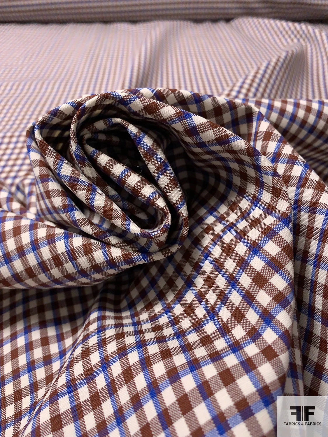 Be the first to review “Italian Gingham Check Stretch Wool Suiting With Fused Back – Brown / Blue / Light Ivory” Cancel reply
