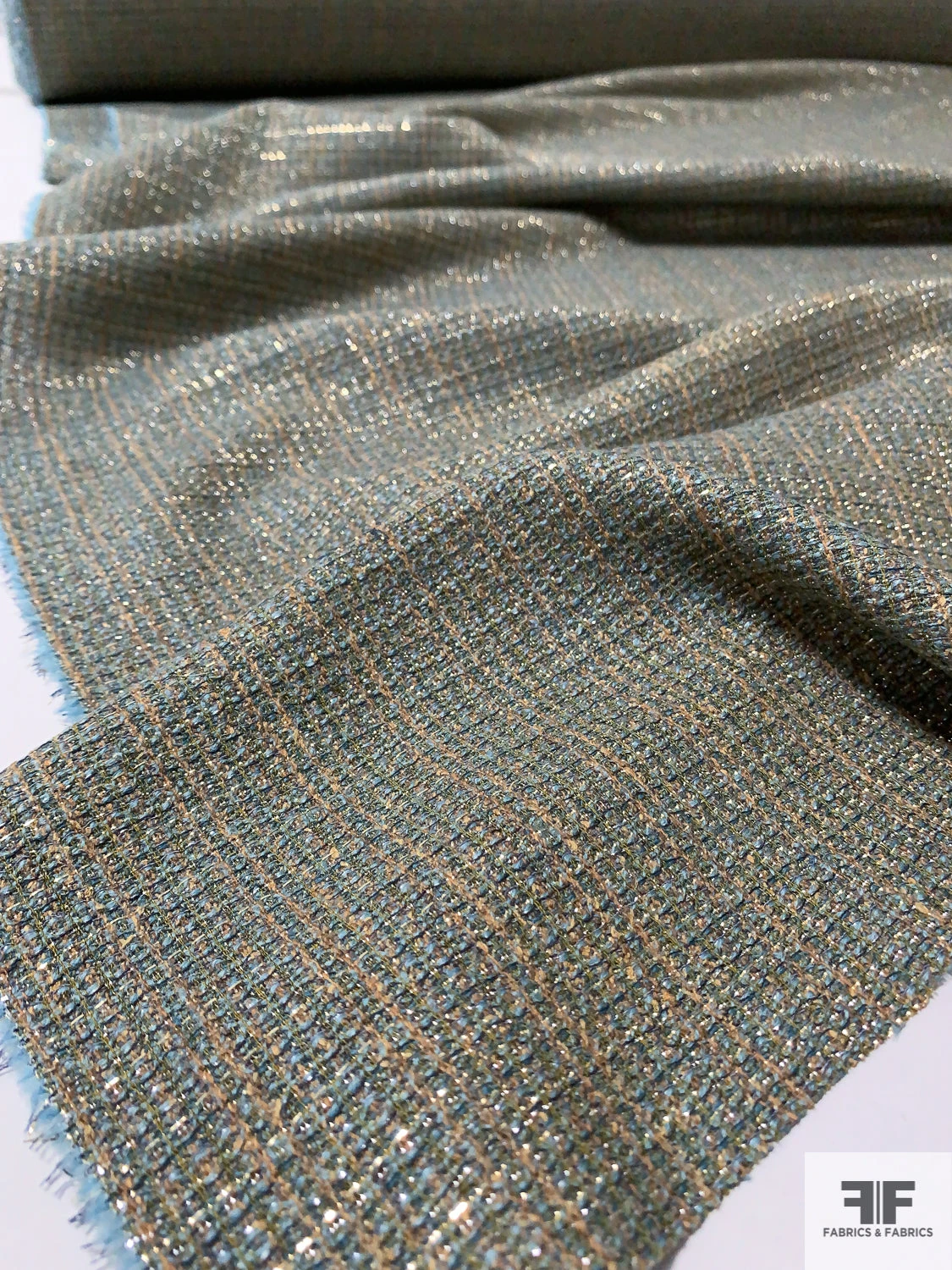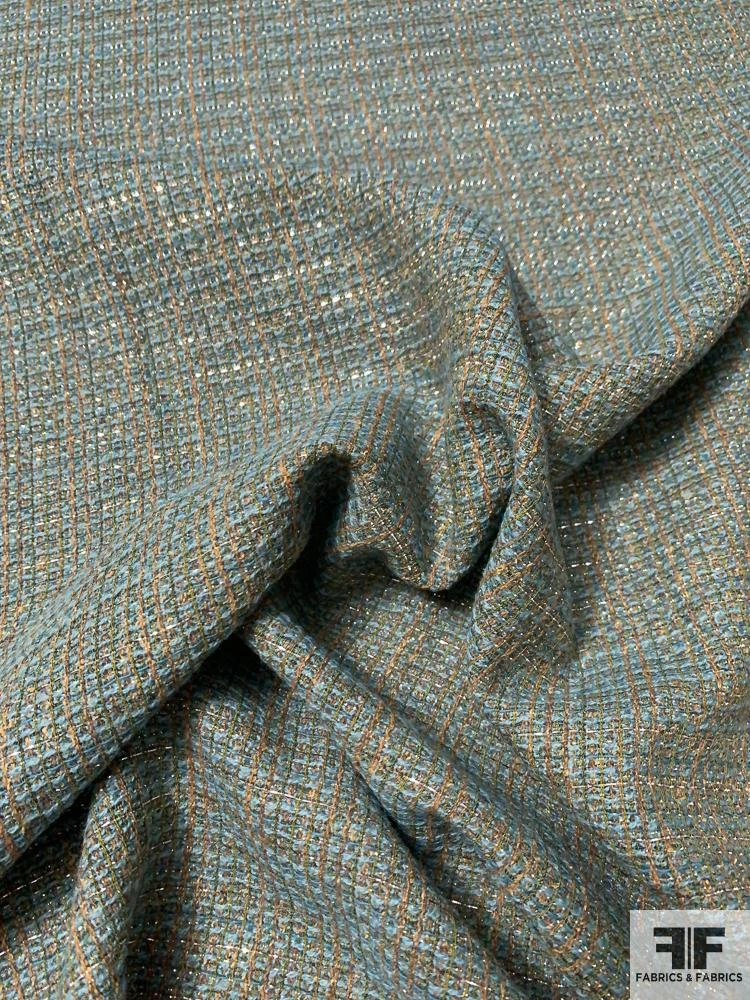 Be the first to review “Italian Glam Lightweight Wool Blend Tweed With Lurex – Dusty Teal / Tan / Silver” Cancel reply