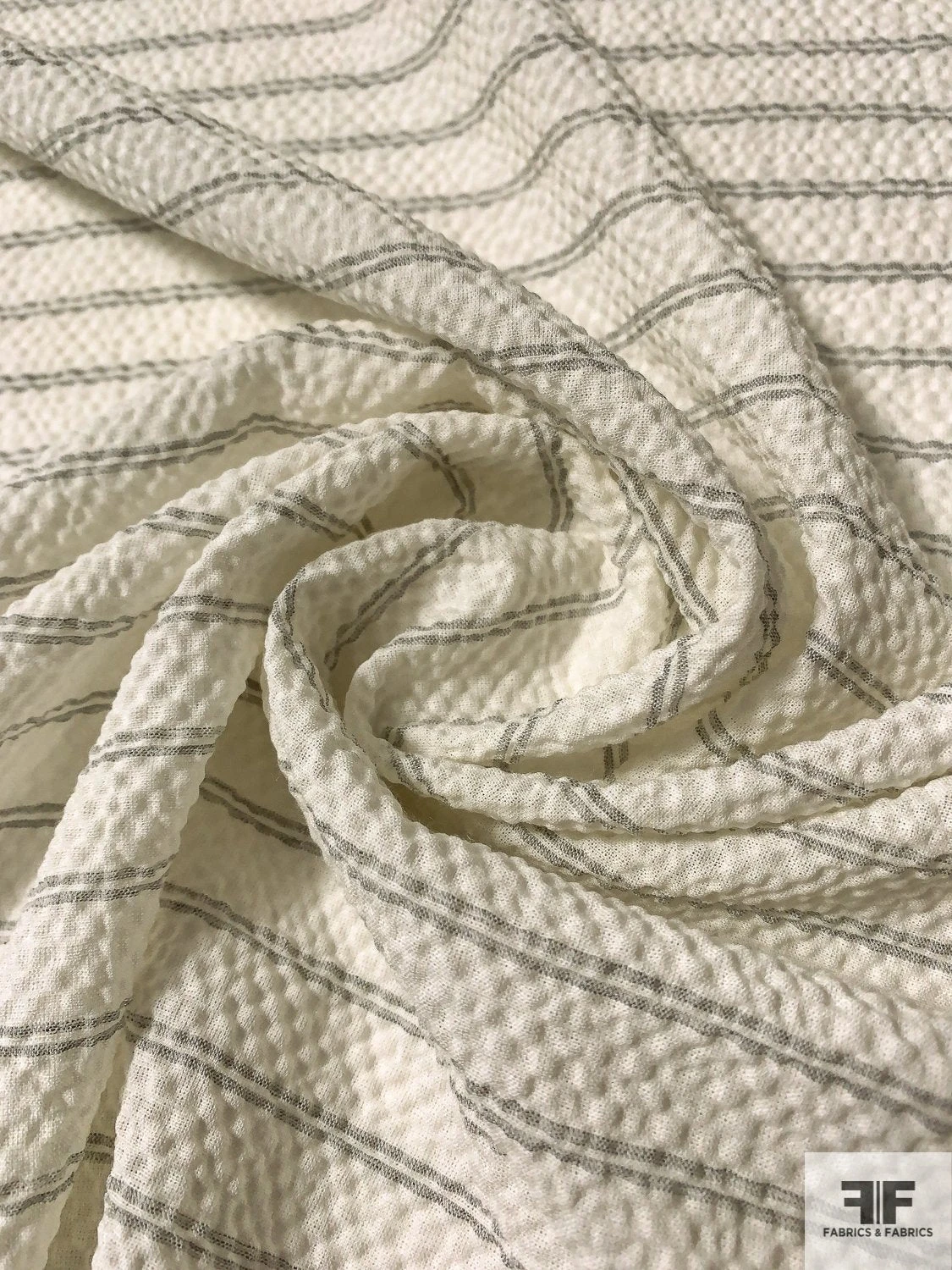 Be the first to review “Italian Horizontal Striped Puckered Cotton Shirting – Ivory / Light Grey” Cancel reply