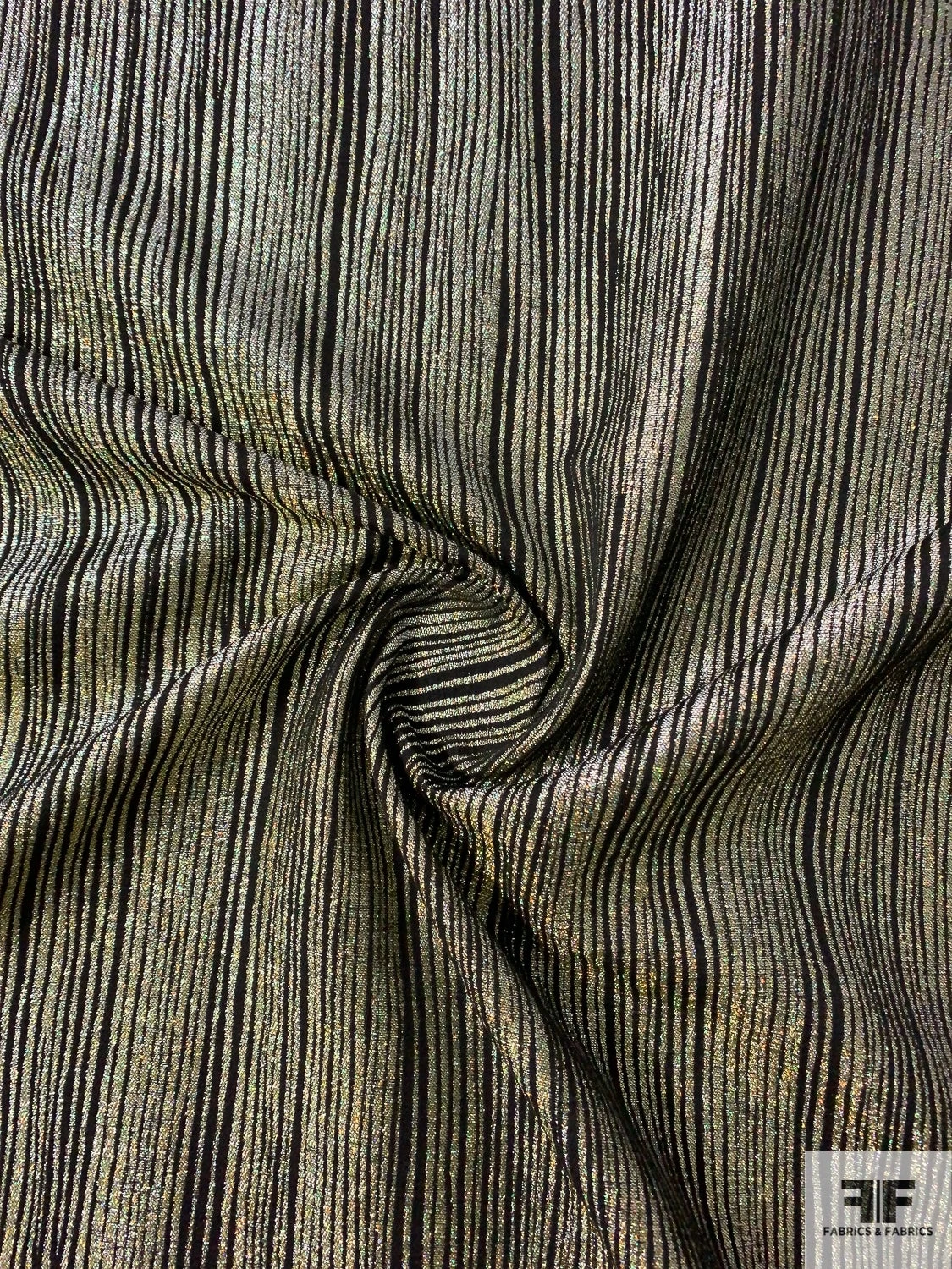 Be the first to review “Italian Ladies Suiting With Metallic Wavy Stripes And Vertical Stretch – Aurora Borealis Gold / Black” Cancel reply