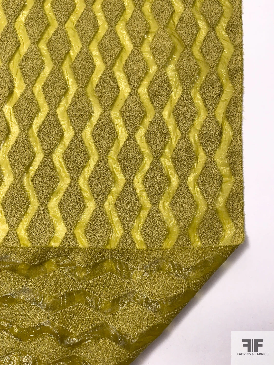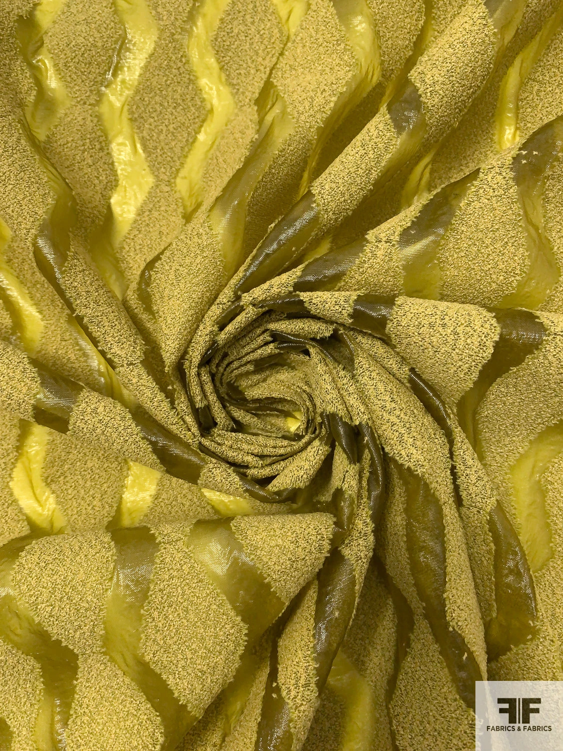 Vibrant and architectural, this Italian novelty organza stuns in an olive-chartreuse hue with bouclé-detailed geometric motifs that add dimension and intrigue. Lightweight with a crisp drape and a semi-opaque finish, it’s ideal for layered gowns, voluminous skirts, or sheer statement tops. Designed by a renowned NYC label, this fabric brings a bold, couture sensibility to modern silhouettes.