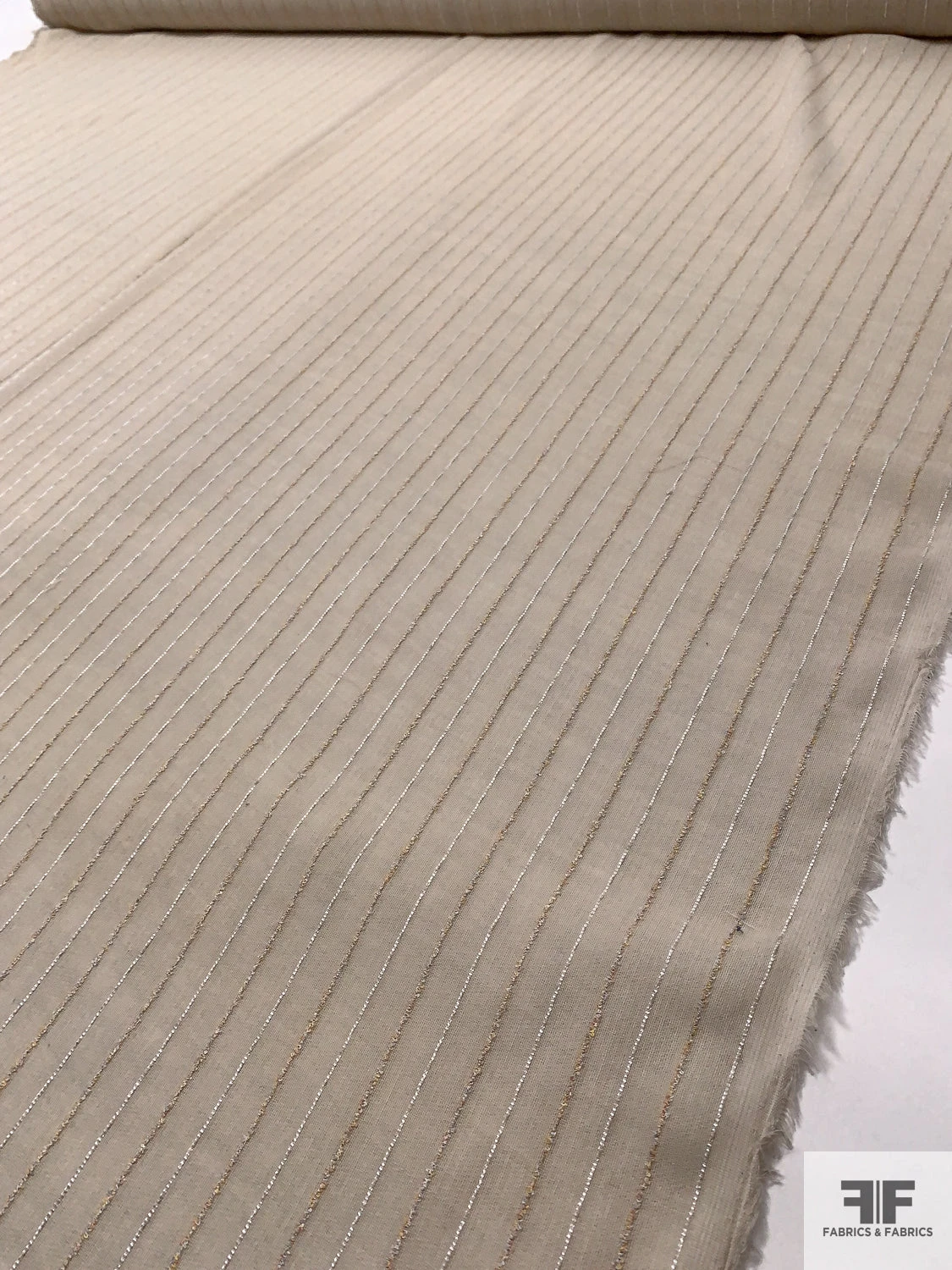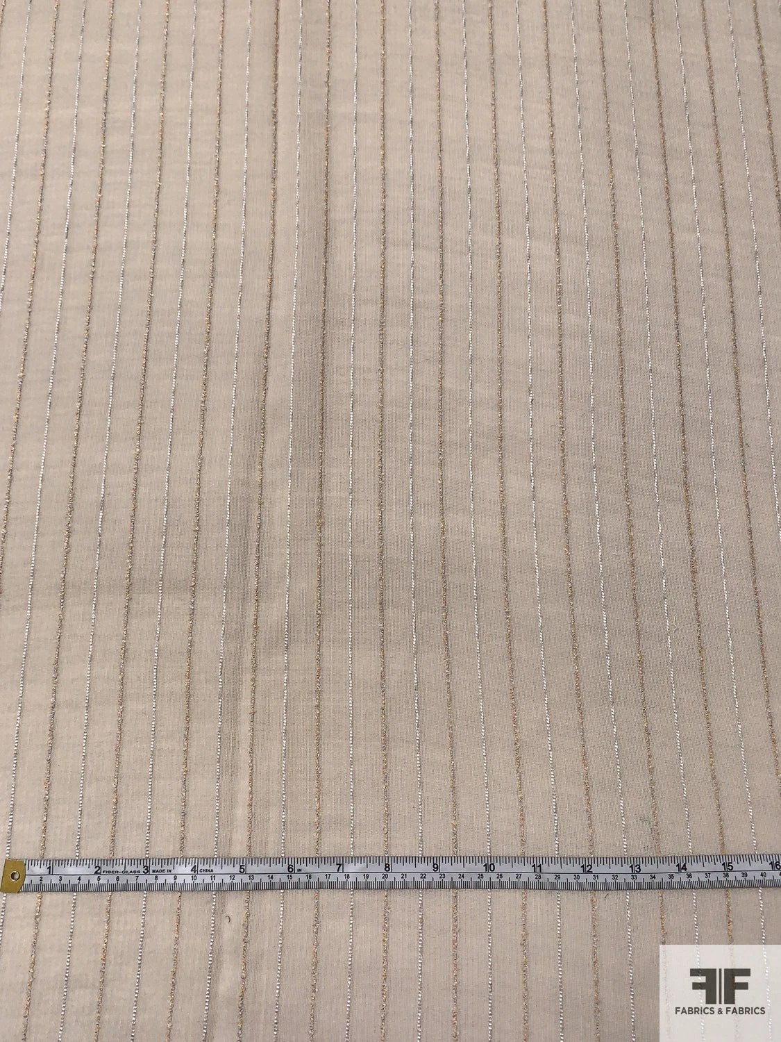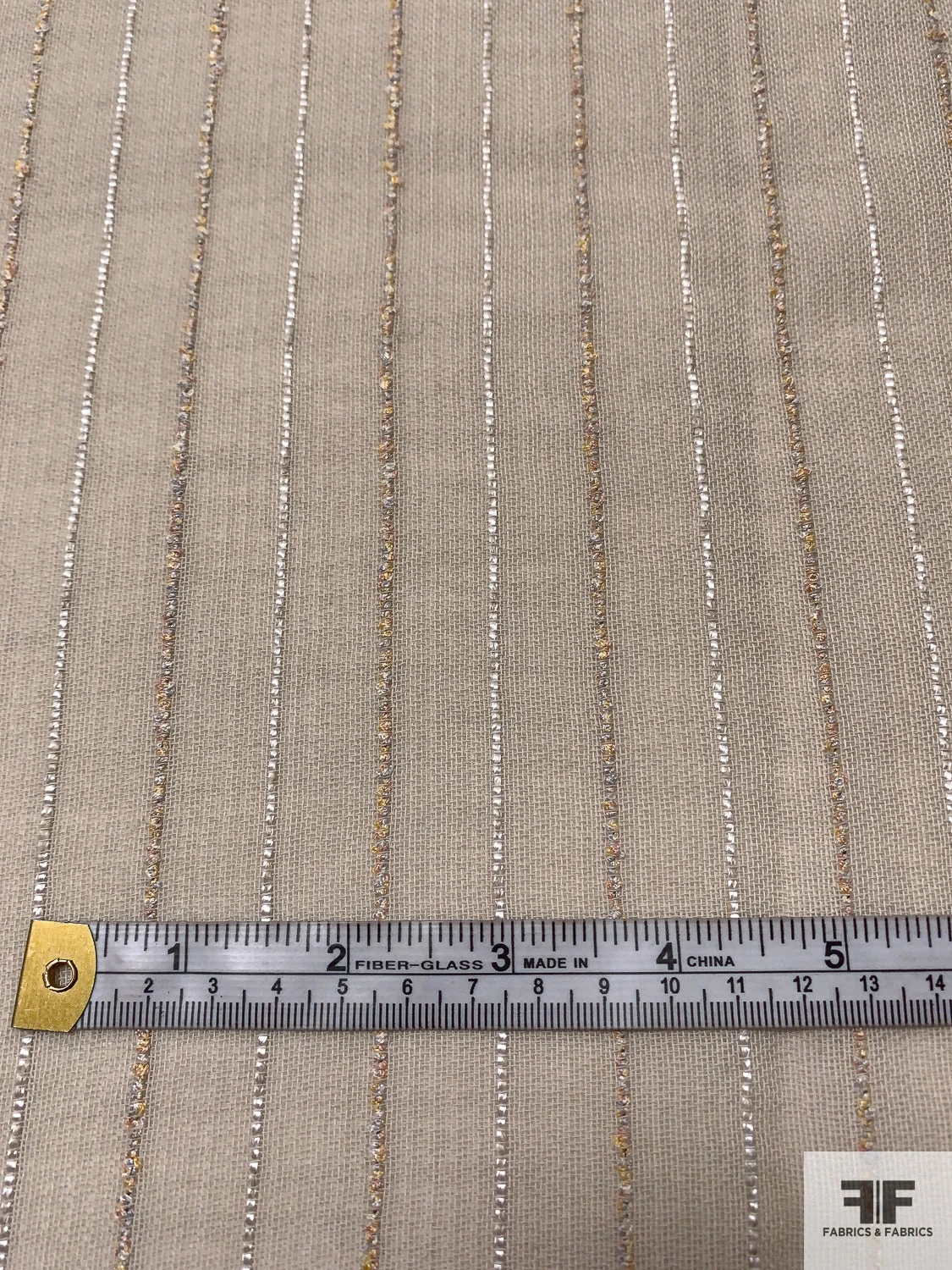 Be the first to review “Italian Plain-Weave Virgin Wool Blend Suiting With Textured Striped Design – Beige / Marigold / Off-White” Cancel reply