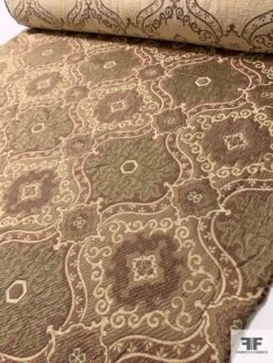 Made in Italy, this heavy cotton‑silk brocade boasts a reversible damask jacquard in khaki, cream and maroon, enriched by a sumptuous chenille finish. Its crisp drape and opaque body lend architectural structure, showcasing raised motifs with striking dimensionality. Flip between faces for contrasting color stories and layered effects that elevate any design. Ideal for tailored jackets, structured gowns or polished suiting—and equally luxurious as upholstery for throw pillows, drapery panels or bespoke bench coverings.