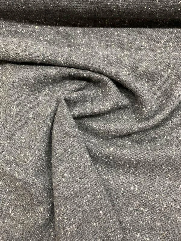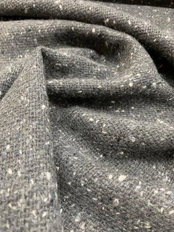 We love the classic style of this Italian speckled jacket weight wool tweed European designer fashion fabric in grey and white.