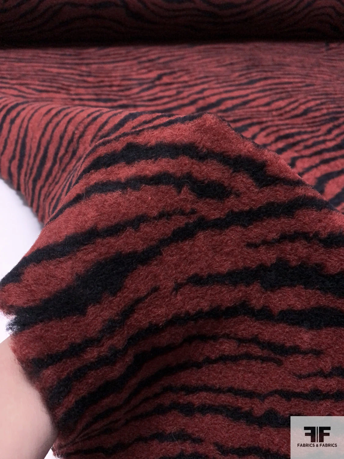 Be the first to review “Italian Tiger Pattern Sherpa-Look Wool Jacket Weight Knit – Brick Red / Black” Cancel reply