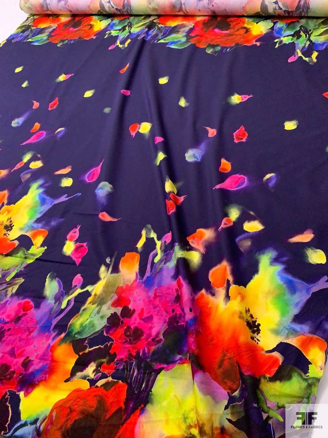 This watercolor floral printed cotton poplin features a painterly floral design rendered in vibrant hues that evoke a hand-painted aesthetic. Made in Italy, the fabric offers a crisp yet smooth surface with a structured drape, perfect for tailored garments or statement pieces. Most notably, it is sold by the panel—each measuring individually—making it ideal for unique pattern placement or panel-based design work. A refined choice for shirts, dresses, or special projects requiring a touch of artisanal elegance.