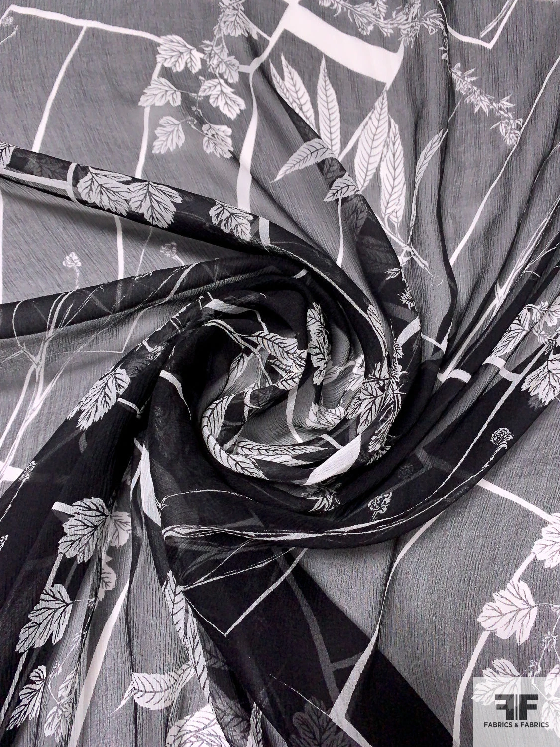 Be the first to review “Leaf Stems And Geometric Printed Slightly Crinkled Silk Chiffon – Black / Off-White” Cancel reply
