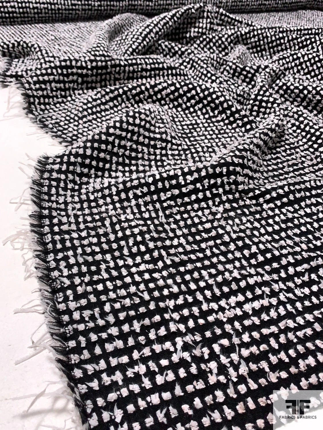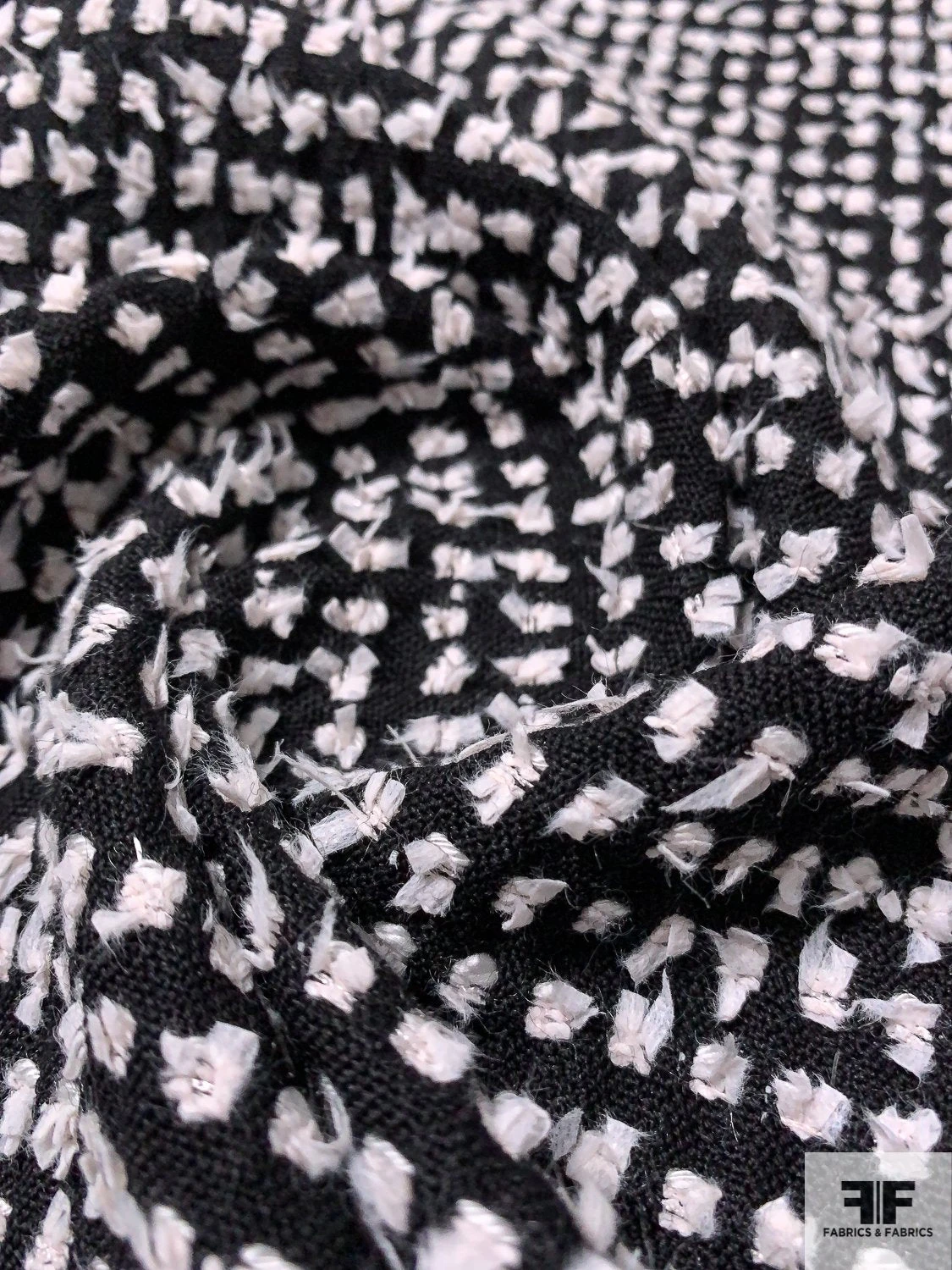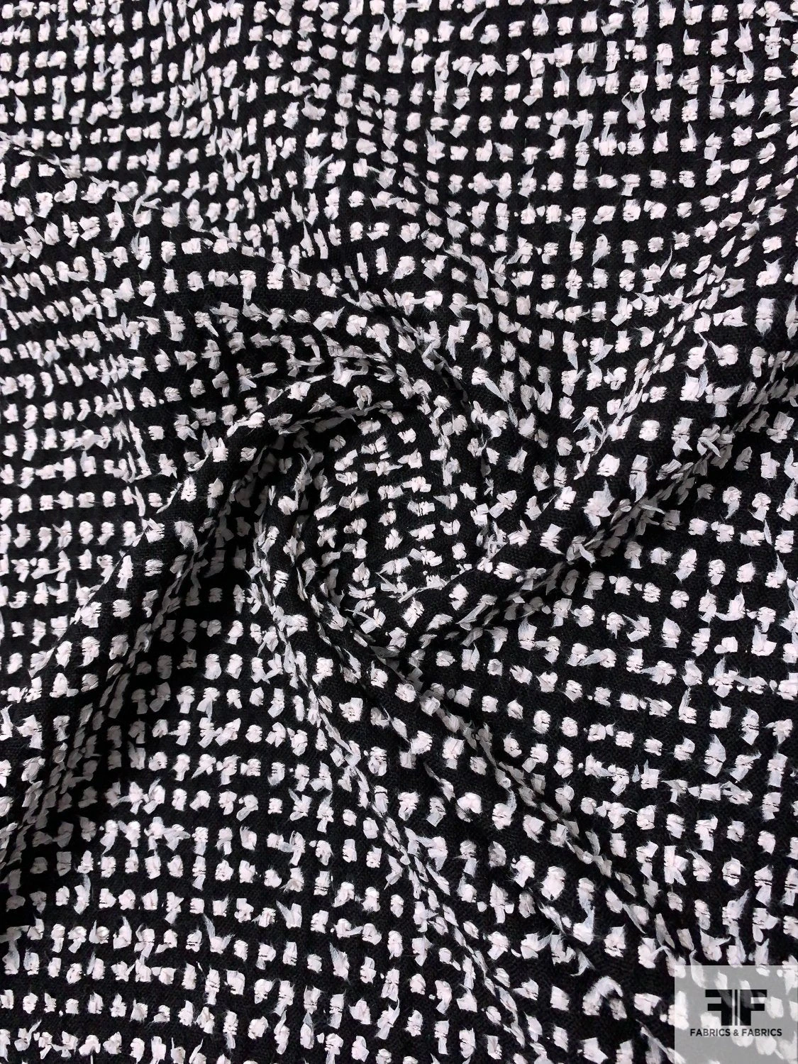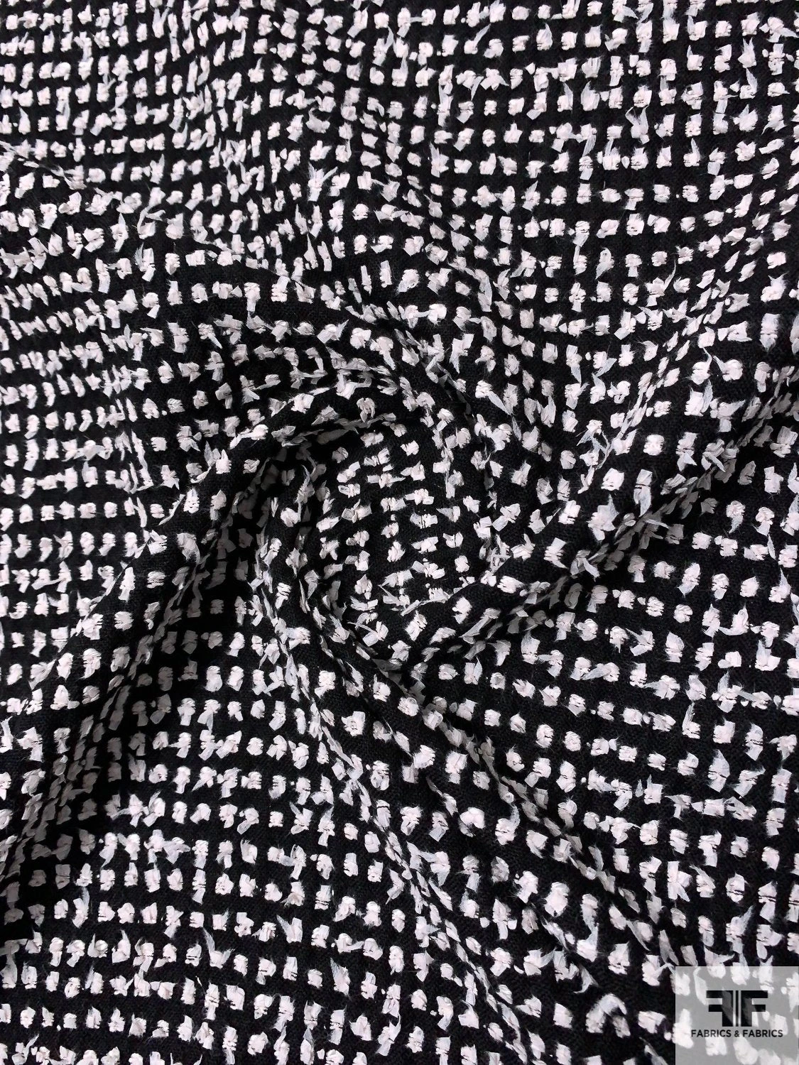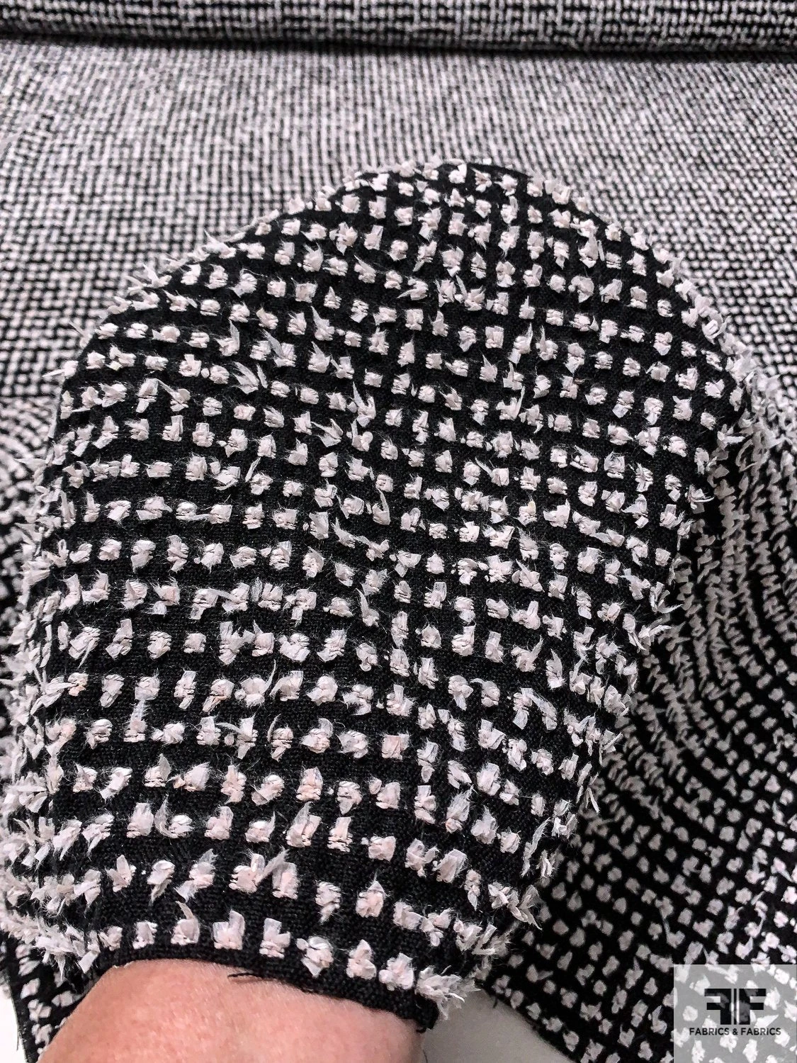 Woven in England from a refined blend of cotton, wool, nylon and acrylic, this heavyweight tweed in classic black and white offers a soft yet slightly textured hand with minimal drape and full opacity. Its timeless houndstooth‑inspired palette and structured body are perfect for sharply tailored jackets, high‑waisted trousers or a sleek pencil skirt. The fabric’s enduring elegance also translates to home décor—think refined throw pillows or a statement-upholstered bench that channels sartorial sophistication.