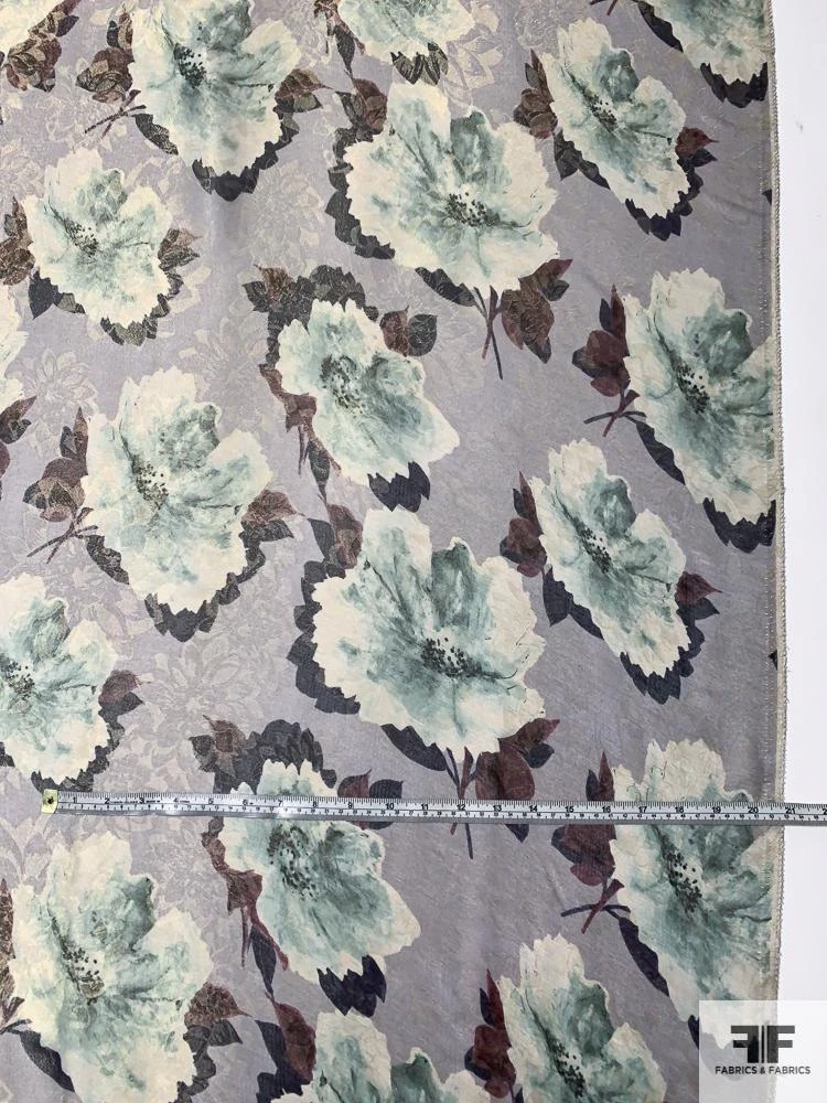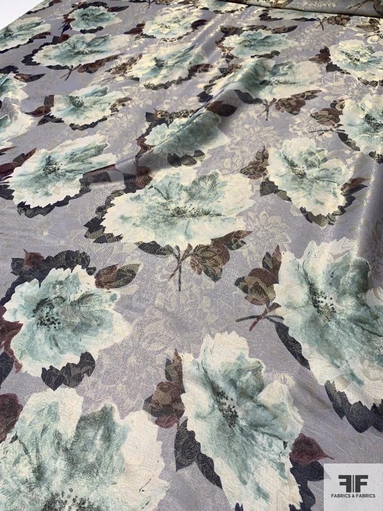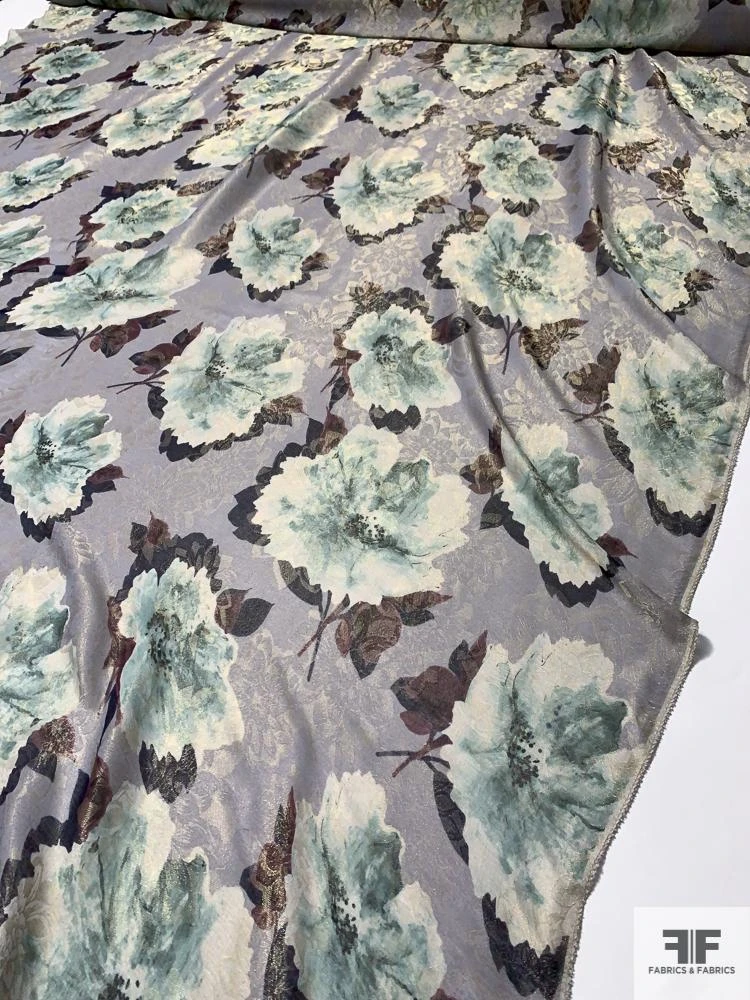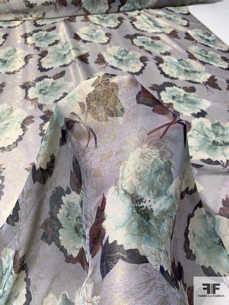 Exclusively woven in Italy for J Mendel, this floral-printed jacquard lamé in smoky grey, soft mauve, and dusty teal drapes like liquid silk. Its lightweight, sheer body and ultra-smooth hand let delicate blossom motifs shimmer subtly with every movement. With a generous, fluid drape, it’s perfect for bias-cut evening gowns that float on the body, ethereal wrap dresses, or tiered skirts, as well as diaphanous overlay blouses or sweeping capes that transform each silhouette into a work of art.