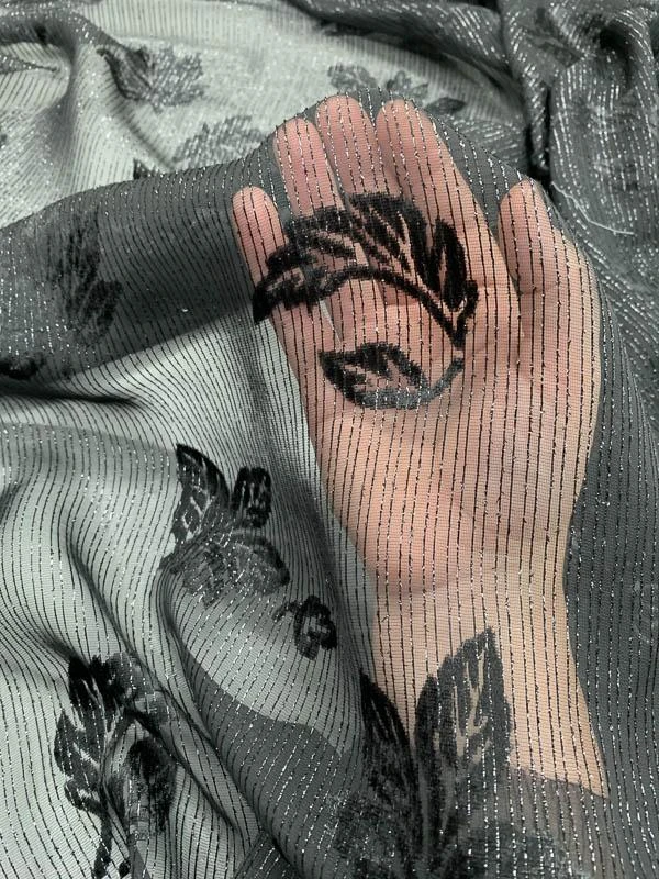 Be the first to review “Metallic Floral Striped Poly/Lurex Cut Velvet – Black” Cancel reply