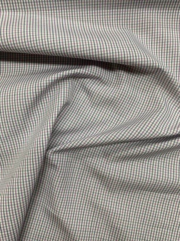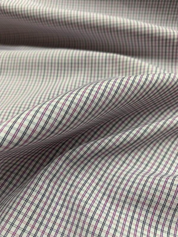 This mini plaid cotton shirting designer fashion fabric in blue, grey, and purple is perfect for high-end dress shirts.