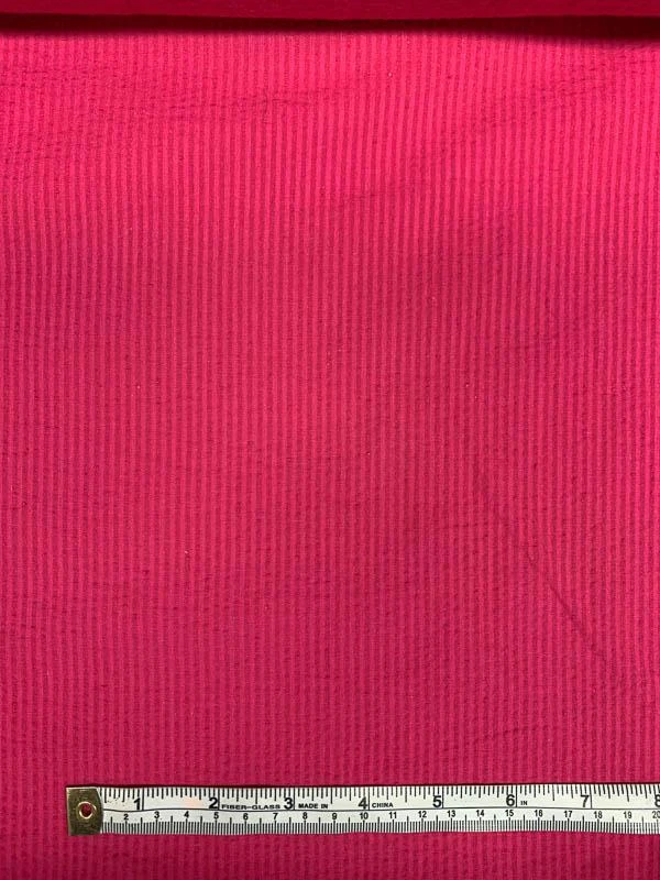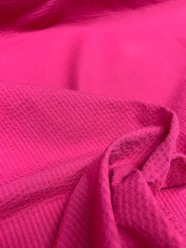 This magenta mini seersucker solid cotton shirting designer fashion fabric is a perfect lightweight all-cotton fabric to make clothing for spring and summer wear.