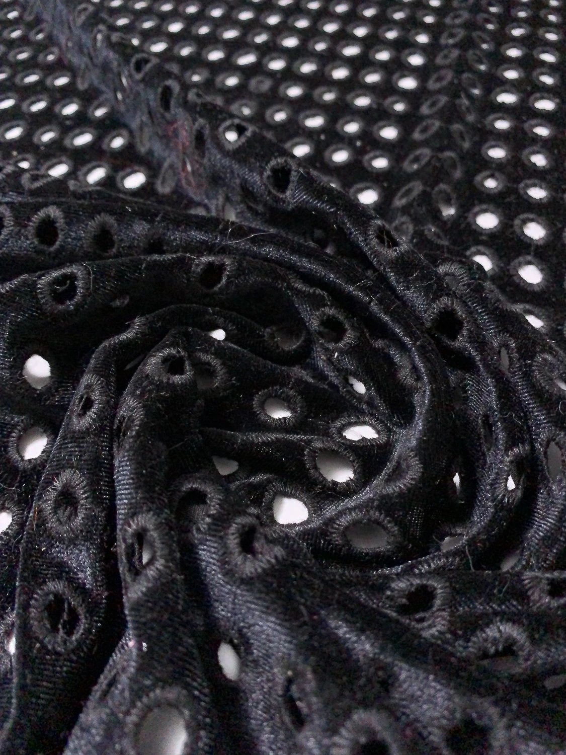 Be the first to review “Ovals Embroidered Eyelet Stretch Polyester Velvet – Black” Cancel reply