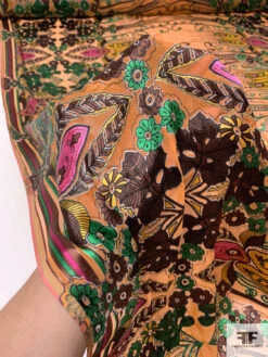 Double-Border Pattern Floral Printed Burnout Chiffon – Orange / Green / Brown / Magenta