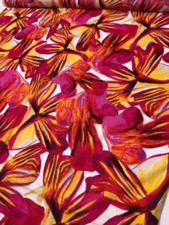 Italian Bold Floral Petals Printed Lightweight Cotton Lawn – Magenta / Red / Marigold / White
