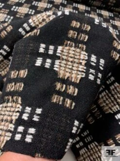 Made In England Novel Basketweave Jacket Weight Wool Blend Suiting – Black / Taupe / Tan / Off-White