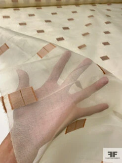 Rectangles Fil Coupé Stiff Silk Organza With Lurex Stitching – Dusty Coral / Ivory / Gold