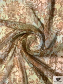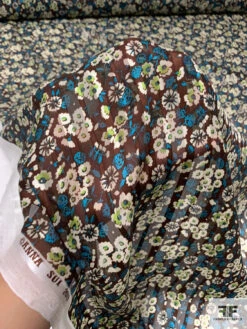 Anna Sui Ditsy Floral Printed Satin Striped Silk Chiffon – Brown / Turquoise / Lime / Off-White