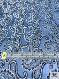Paisley Silk Necktie Jacquard Brocade – Cool Blue / Black / White