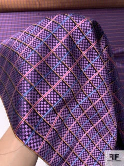 Micro-Checkered Windowpane Silk Necktie Jacquard Brocade – Purple / Copper / Blue / Pink
