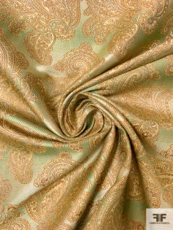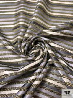 Horizontal Striped Silk Necktie Jacquard Brocade – Olive Greens / Beige / Light Gold
