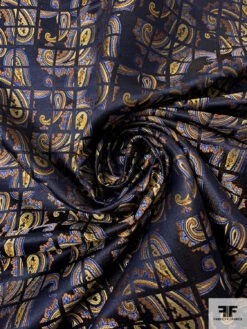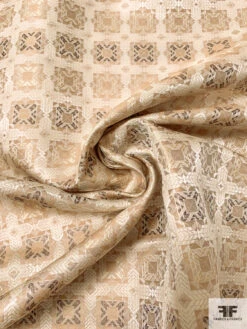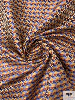 Geometric Basket Silk Necktie Jacquard Brocade – Orange / Yellow / Olive-Gold / Blue