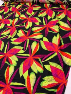 Italian Large Floral Petals Printed Silk-Cotton Challis – Fluorescent Neon Orange / Lime / Magenta