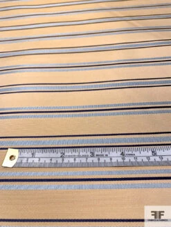 Art Deco Geometric Silk Necktie Jacquard Brocade – Navy / Blue / Turmeric / Champagne