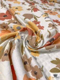 Bold Painterly Trailing Floral Printed Silk Chiffon – Orange / Hot Pink / Magenta / Black